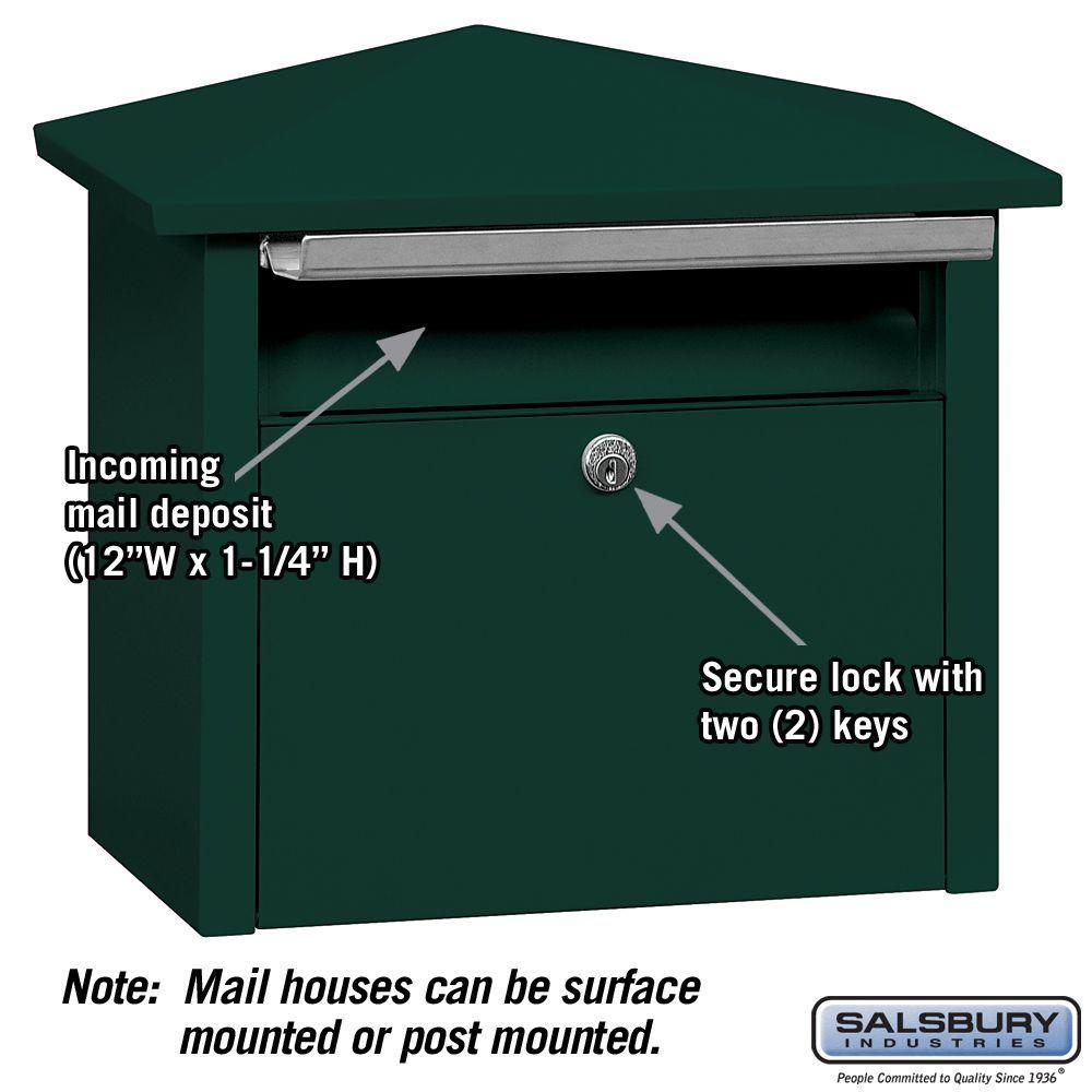 Salsbury Industries Mail House Mailboxes are constructed of stainless steel for unparalleled resistance to the elements. The incoming slot is perfect for residents receiving larger items, such as magazines and bank check boxes. The storage compartment is wide and deep and is protected by a durable stainless steel cam lock with dust shutter.