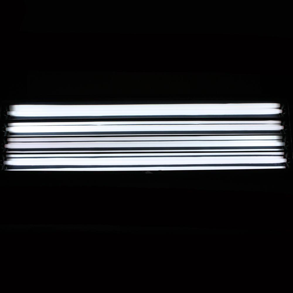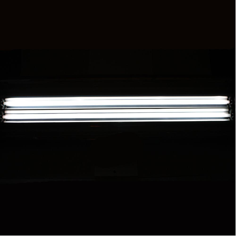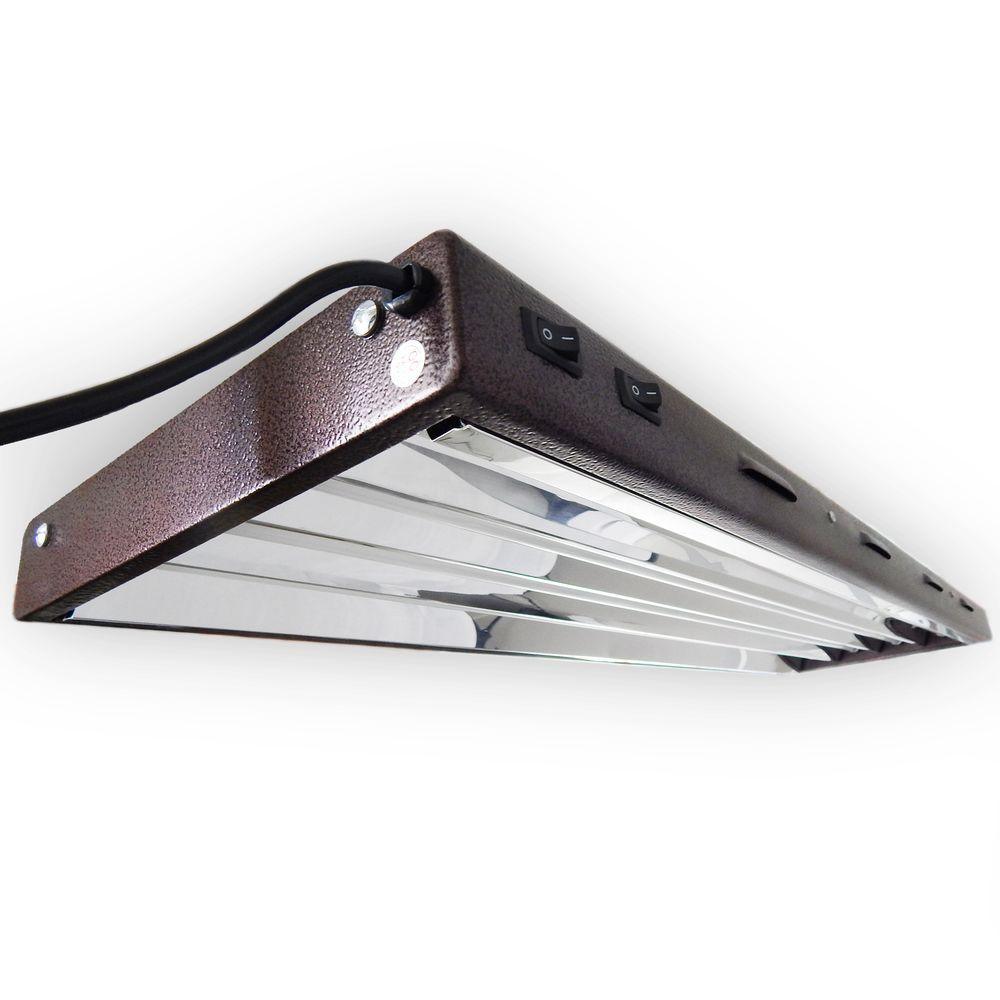 Effectively propagate your seedlings with this high output fluorescent grow light fixture designed specifically for plant propagation. With a total of 20,000 lumens in the blue spectrum, it is perfect for propagating seedlings, clones, or keeping plants thriving year-round. Each bulb boasts 5,000 lumens and 54 watts, making it the strongest fluorescent lighting available. The included single port grounded multi-pin timer is user-friendly and allows for 15-minute on cycles, perfect for regulating water use and grow light schedules. This fixture features a steel housing, highly reflective aluminum reflector, and efficient cooling through louvered and slotted design. It also includes major brand solid state electronic ballasts and comes with a 1-year rebuild or replacement warranty. Complete with 2 chrome hangers and a 7 ft. power cord, this fixture is ideal for propagation and operates on 120 volts. The included blue spectrum 6400K bulbs will ensure your plants receive the perfect light spectrum.
