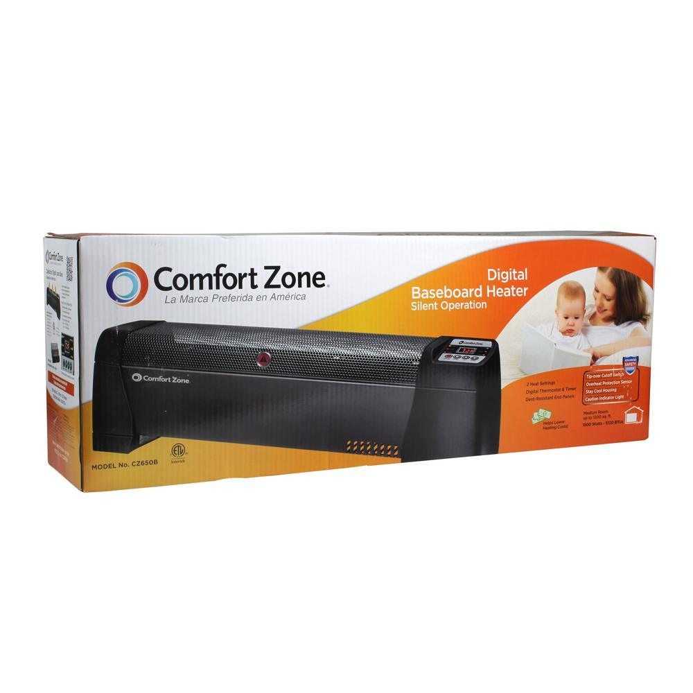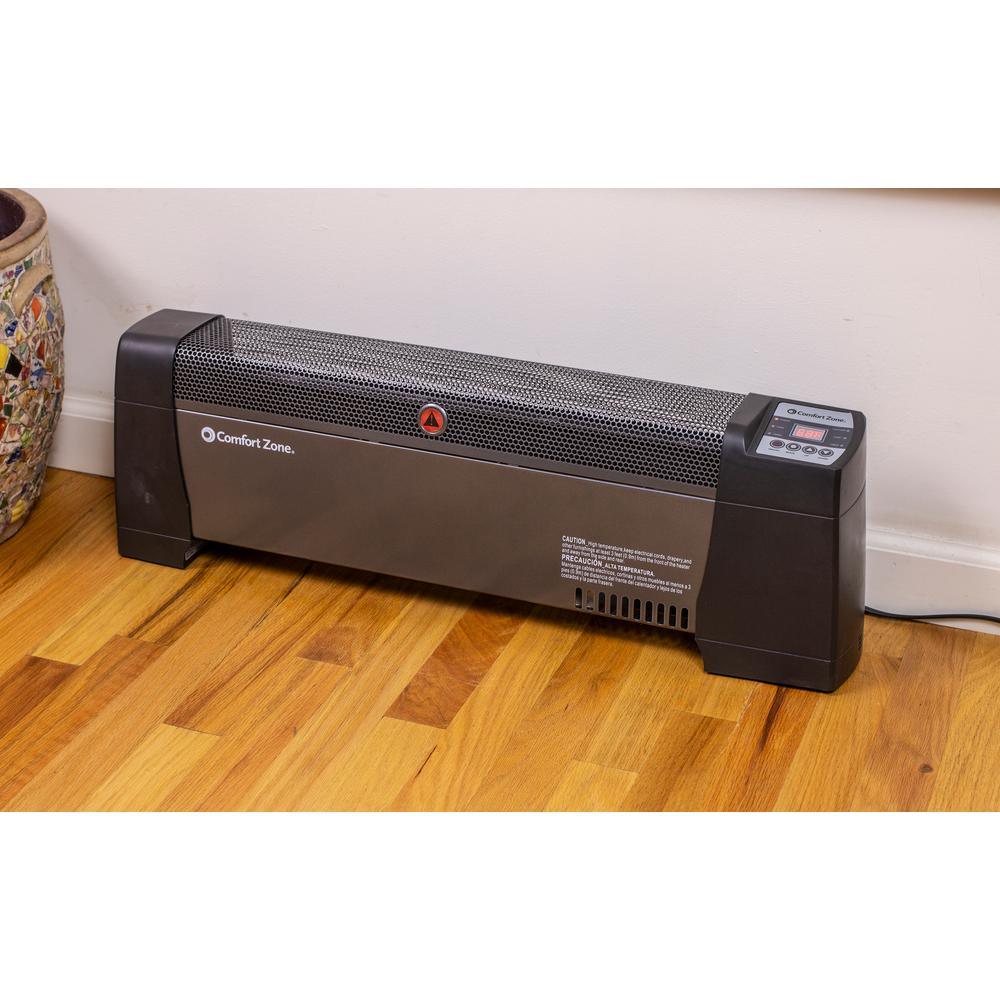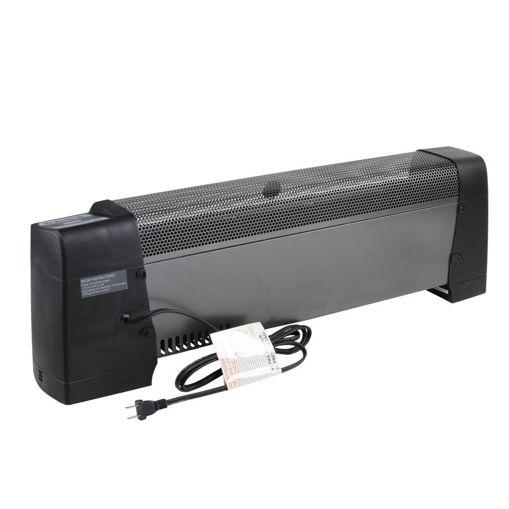 There's plenty of power in this digital baseboard heater thanks to its 1500-Watts, so you can rest assured that you'll warm up in no time. The convection heater features two heat settings and a digital Adjustable thermostat with temperature display, so you'll have the level of control you need for the precise temperature you want. The electric baseboard heater delivers silent operation to ensure that no one is disturbed. Read a book, watch TV or chat without being distracted by irritating background noise. The low-profile black heater features dent-proof end panels for durability, so the unit will look stylish for years to come. An advanced safety system provides added peace of mind, especially if you have pets or children in the home. The system includes a safety tip-over switch that cuts power if your heater is accidentally knocked over, a stay-cool body and an overheat protection sensor that prevents it from getting too hot. If you're looking for a way to save on home heating bills, look no further than this electric baseboard heater with thermostat. It allows you to keep the room you're in at a warm and comfortable level while lowering the heat in the rest of your home, particularly in unused areas.