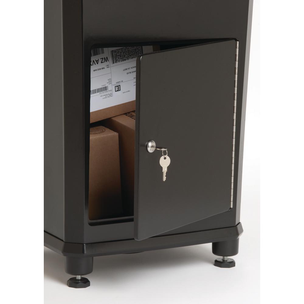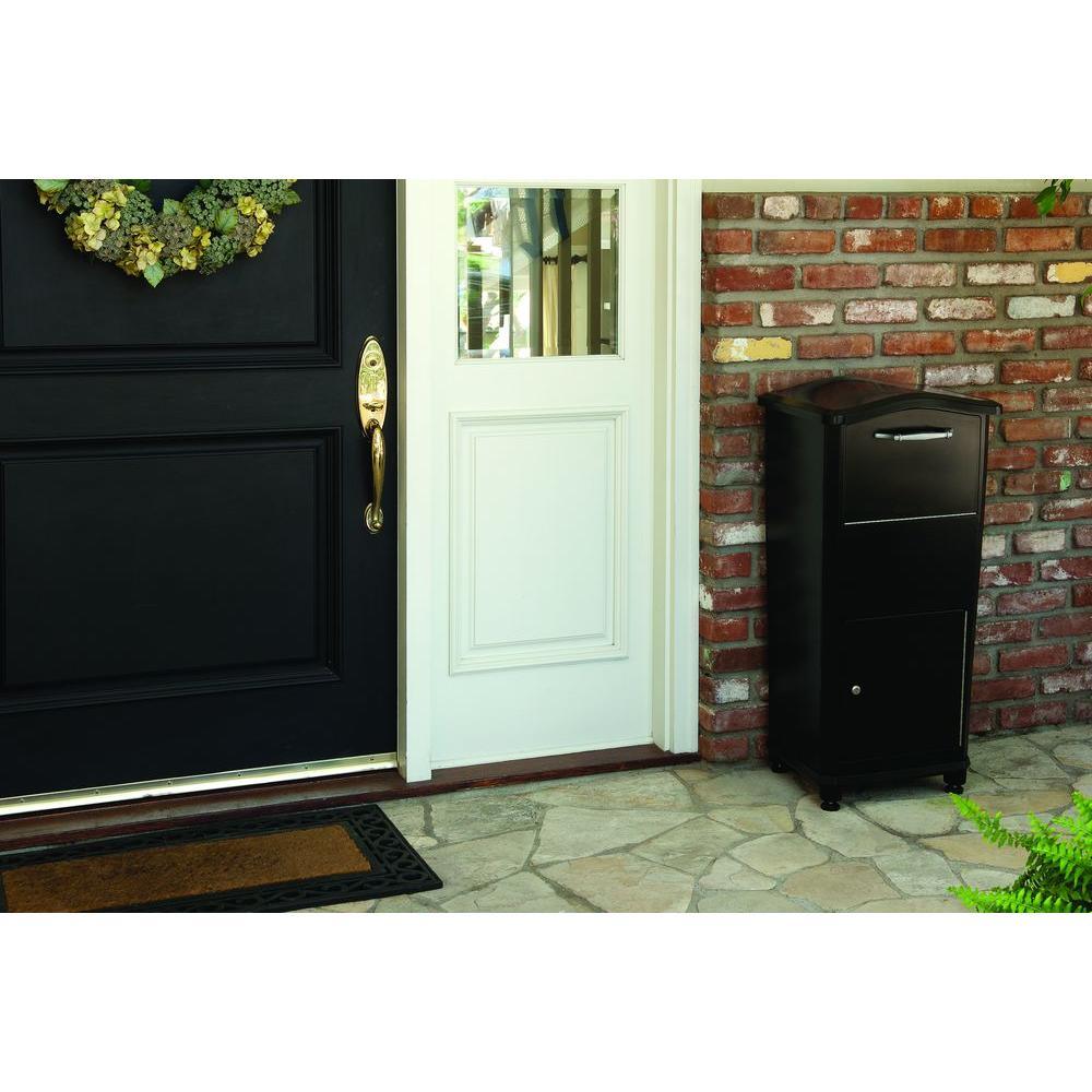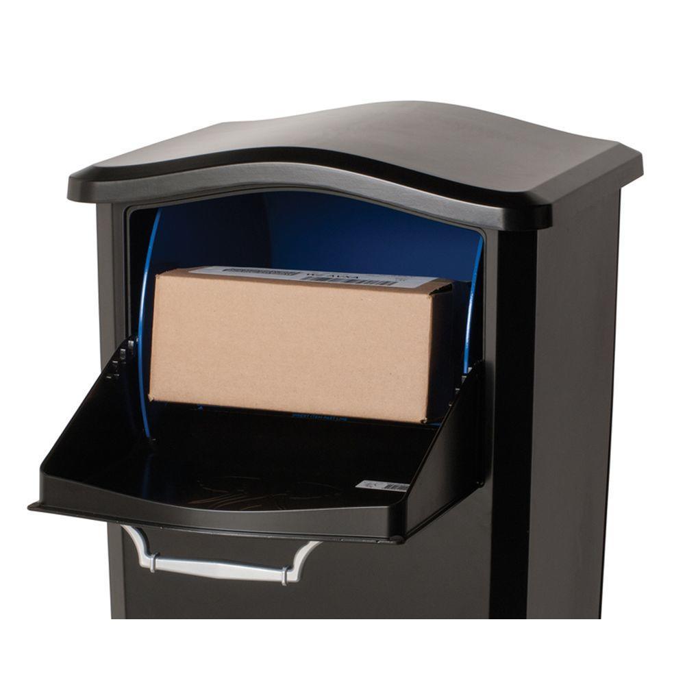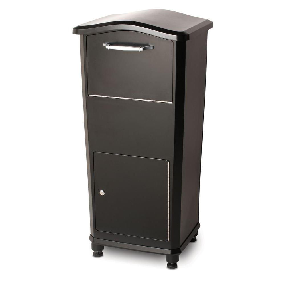Architectural Mailboxes Elephantrunk parcel drop is the best solution for parcel deliveries. The Elephantrunk is always home even when you’re not, providing you with peace of mind that your parcel deliveries are no longer missed or go missing. This full service receptacle can receive multiple parcels, has an outgoing partition for your outbound shipments and a vacation stopper for when you don’t want to receive parcels. Its sturdy design is made from cast aluminum and heavy-gauge steel powder coated in black to match most environments. It embodies a variety of architectural styles and adds a splash of curb appeal.