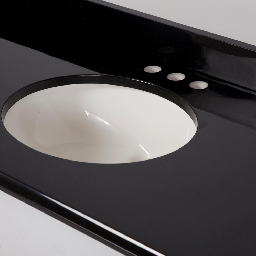 Providing your bathroom with a polished look, this Glacier Bay 37 in. W x 22 in. D Colorpoint Vanity Top in a Black finish is designed for the everyday home with a 36 in. W x 21 in. D vanity cabinet. Resistant to bacteria, mold and mildew, and adaptable to numerous design plans, this durable vanity top is easy to install and comes with a factory-attached under mount white bowl for your convenience.