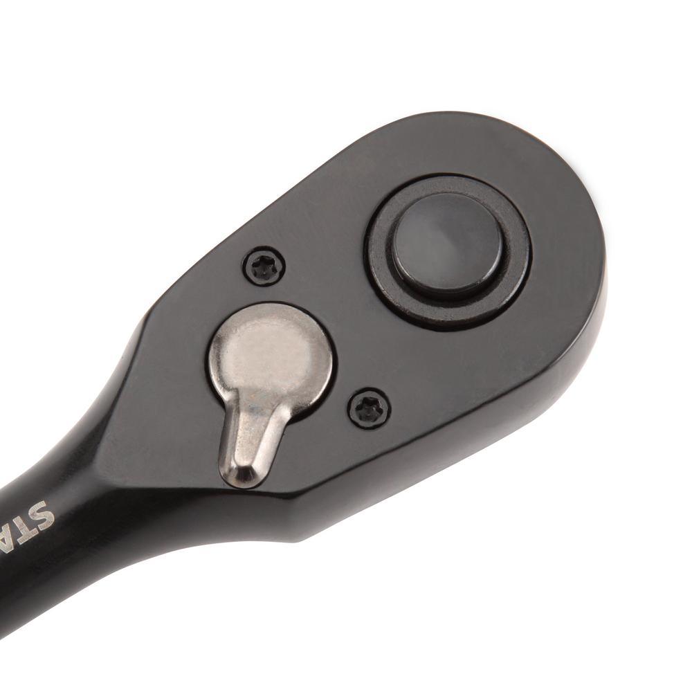 Stanley flexes its tool-manufacturing muscles by continuously enhancing and enlarging its already massive collection of high-quality mechanics' tools. This significant tool category includes a wide variety of ratchets, sockets and accessories in many styles, sizes and finishes. This kit includes 1/4 in. and 3/8 in. drive black chrome sockets and ratchets. There are laser-etched markings on each of the parts for identification. The ratchets are designed with a quick release switch and reversible mechanism.