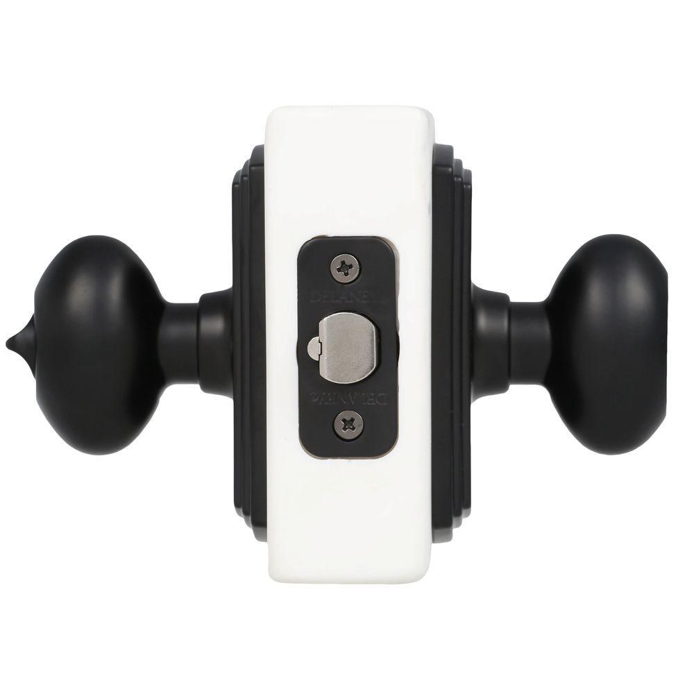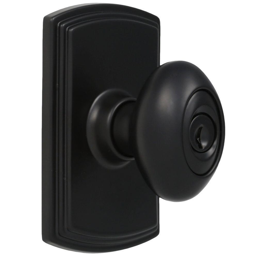 Inspired by the simple elegance of Venice and timeless beauty of Tuscany, the Italian Collection Canova Black Entry Knob features a unique egg shape and enlarged backplate for a stylish pop to your home. The black finish complements any design color scheme. Use this knob for any door that needs to be locked with a thumb turn on the inside and opened with a key on the outside. The knob can be left in the unlocked position.