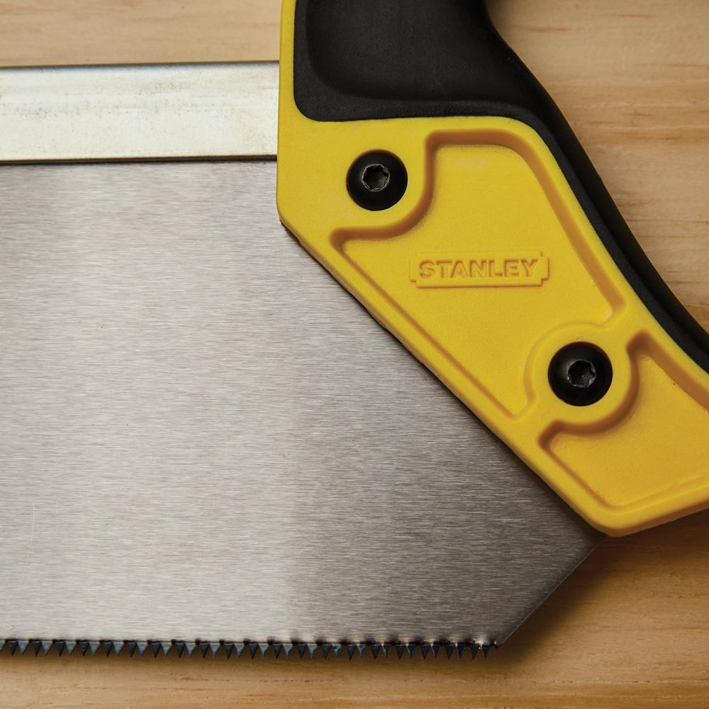 This back saw is ideal for precise cutting tasks like dovetails, miters and tendons. The back saw is for use with fine finish, plywood and hardwoods. Heavy duty screws hold the blade to the handle. The handle is constructed from a bi-material for durability and comfort.