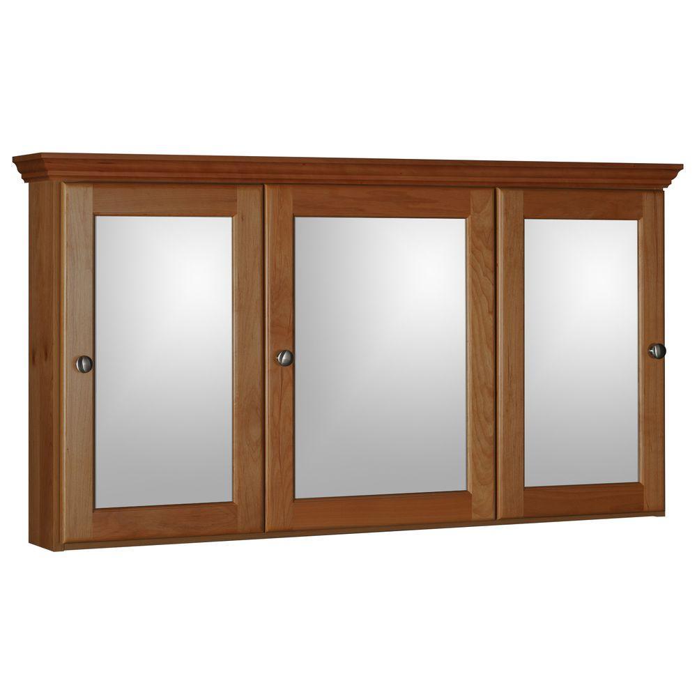 Ultraline 48 in. W x 27 in. H x 6-1/2 in. D Framed Tri-View Surface-Mount Bathroom Medicine Cabinet in Medium Alder