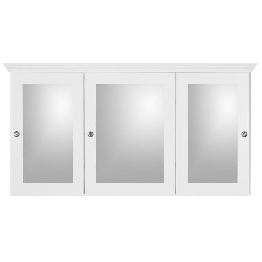 Shaker 48 in. W x 27 in. H x 6-1/2 in. D Framed Tri-View Surface-Mount Bathroom Medicine Cabinet in Satin White