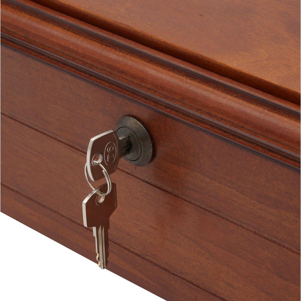 This 4-gun pine wall rack features a locking bar and locking storage. It displays most 52 in. scoped rifles and double barreled shotguns. The rack is easy to assemble and will compliment any room.
