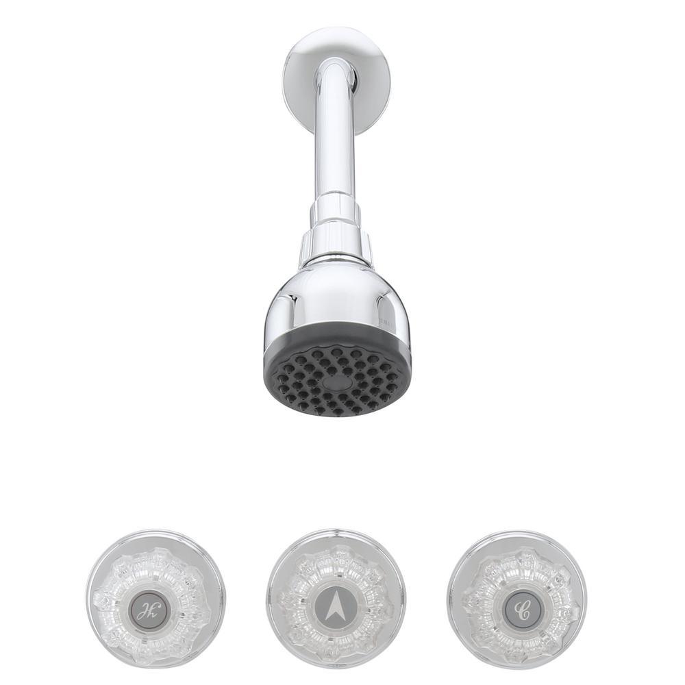 The Homewerks Worldwide 3-Handle Tub and Shower Faucet in Chrome is classically styled to complement a wide variety of bathroom decor. Featuring a 3-handle design for precise water temperature adjustment, the faucet has a single-function, fixed-mount showerhead that provides consistent water flow. Acrylic handles and a solid brass valve body ensures durability, while the chrome finish provides a sleek, polished look.