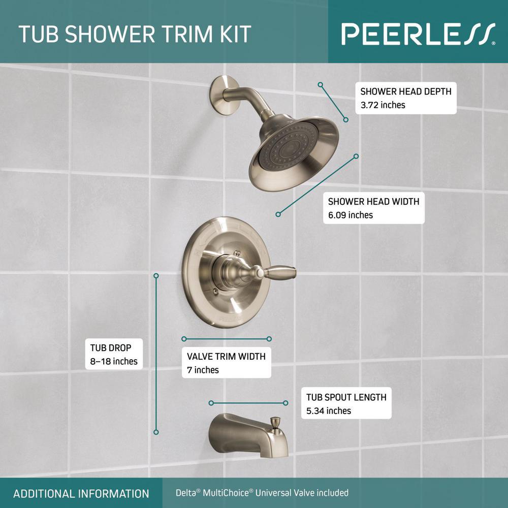 This Single-Handle 1-Spray Tub and Shower in Brushed Nickel is an easy and affordable way to update the look of your bath. GEtting ready in the morning is far from routine when you are surrounded by a bath that reflects your personal style. You can buy with confidence, knowing that Peerless backs this faucet with a lifetime limited warranty.