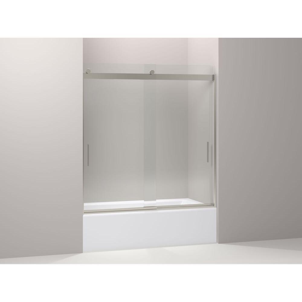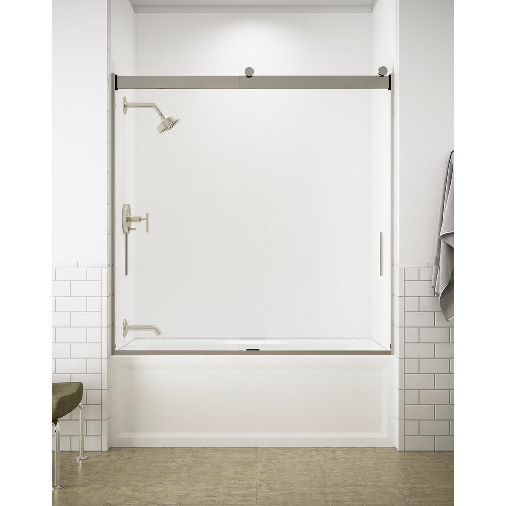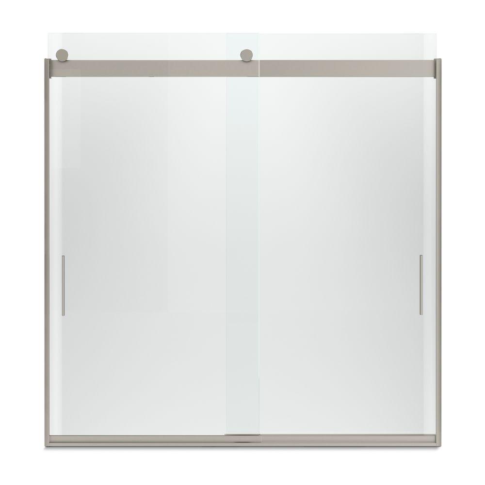 Levity 59 in. x 62 in. Semi-Frameless Sliding Tub Door in Nickel with Handle