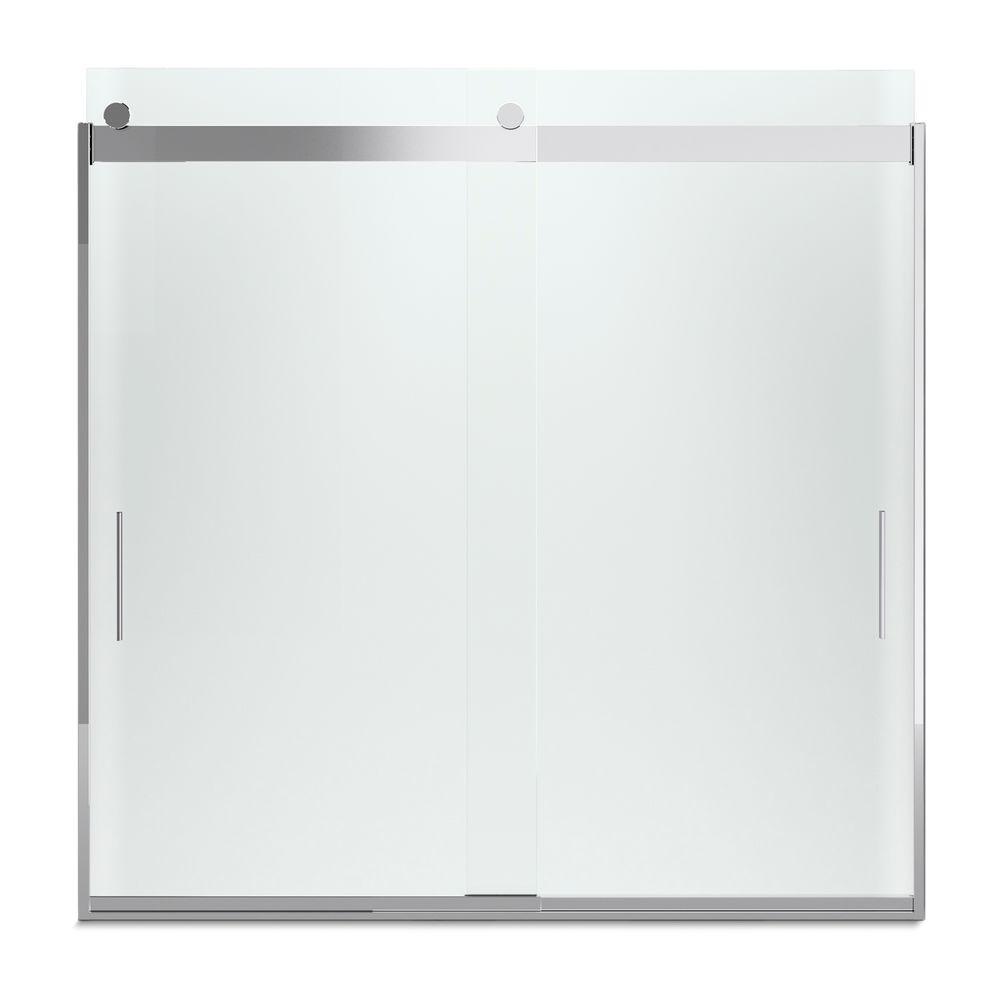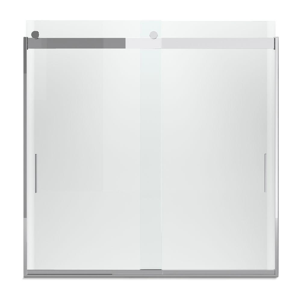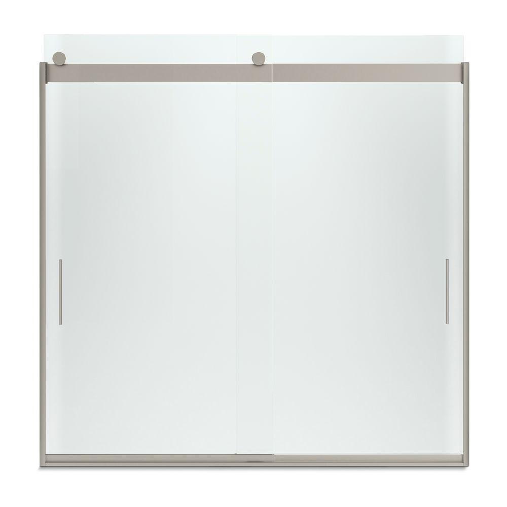 Levity 57 in. x 59.75 in. Semi-Frameless Sliding Tub Door in Nickel frame with Handle