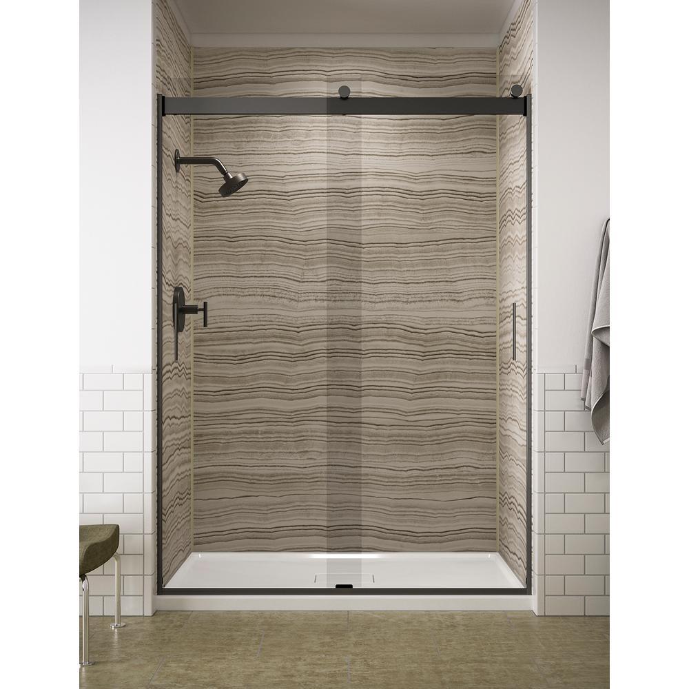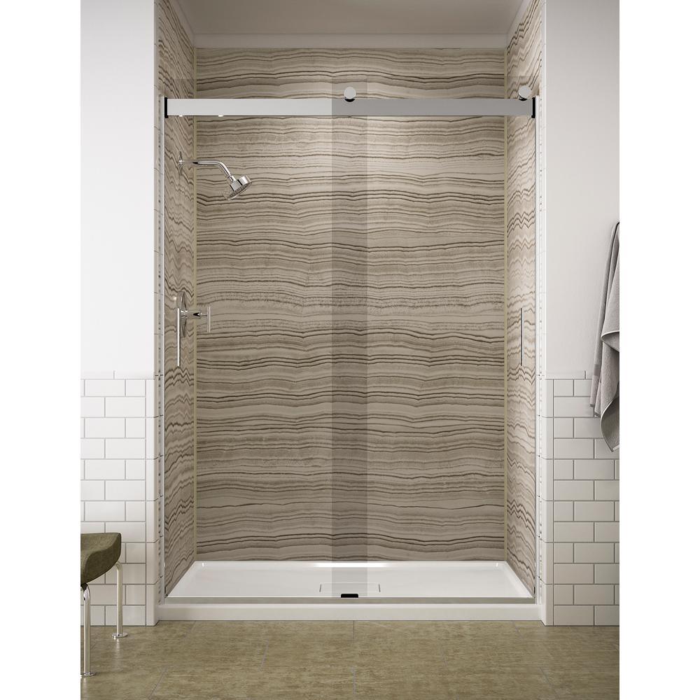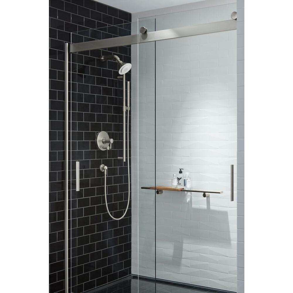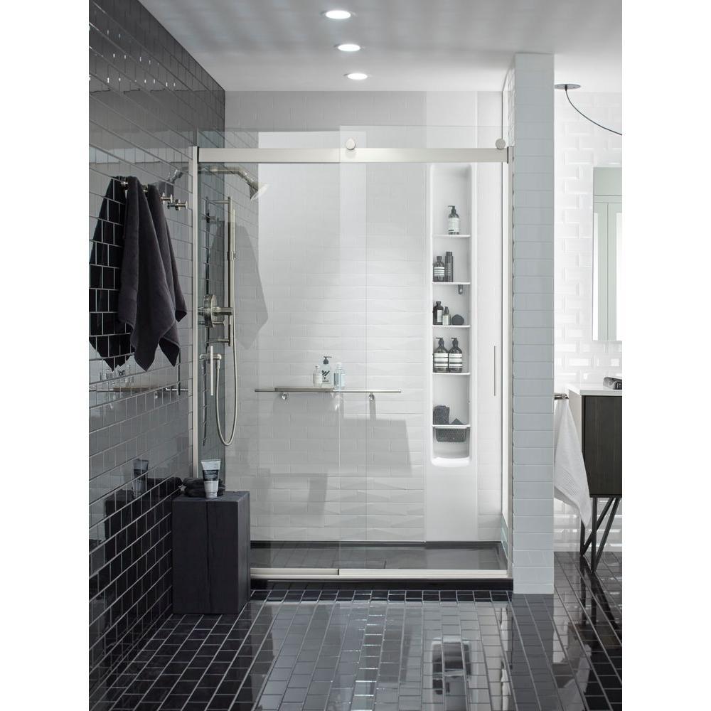 Bringing new technology and sleek style to the contemporary bath, Levity shower doors feature an innovative bypass system and roller design that provide an amazingly smooth, quiet sliding action for a difference you can feel. Levity’s unique design, including fully by-passable glass panels, makes installation easier than ever and allows for adjustability while the door is hanging. Vertical blade handles complement Levity's modern minimalist look, creating an open, inviting space for showering. Premium 3/8 in. thick crystal clear glass offers a luxurious feel.