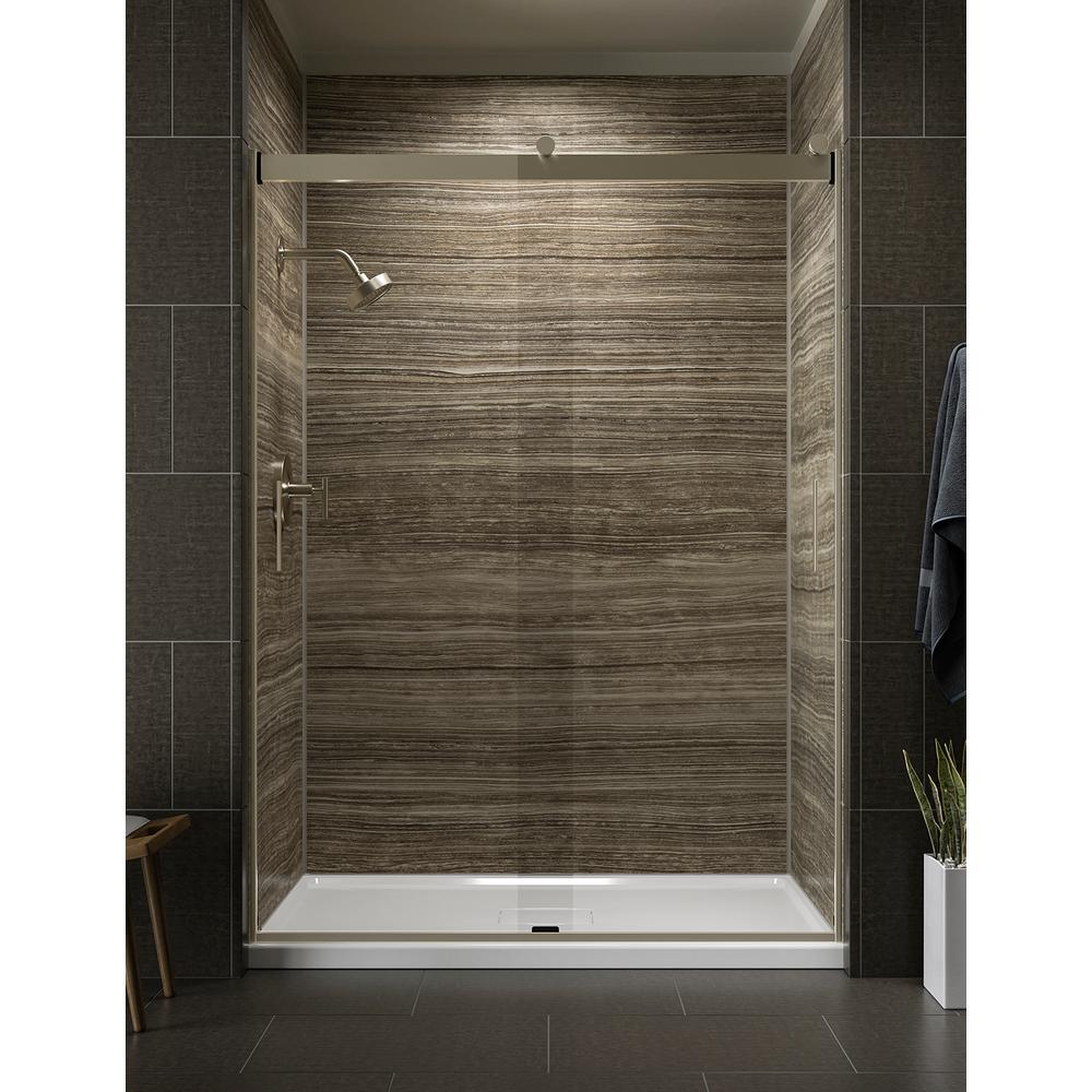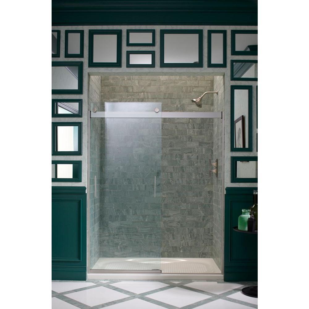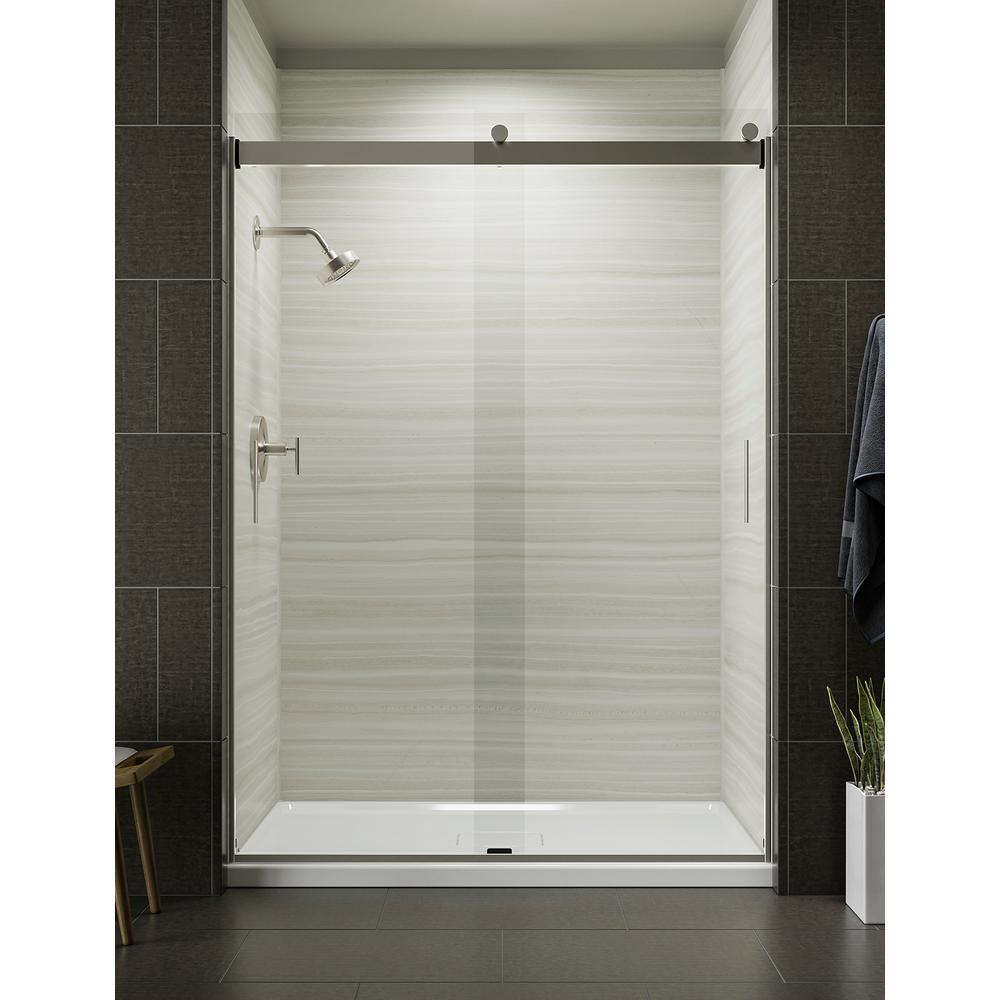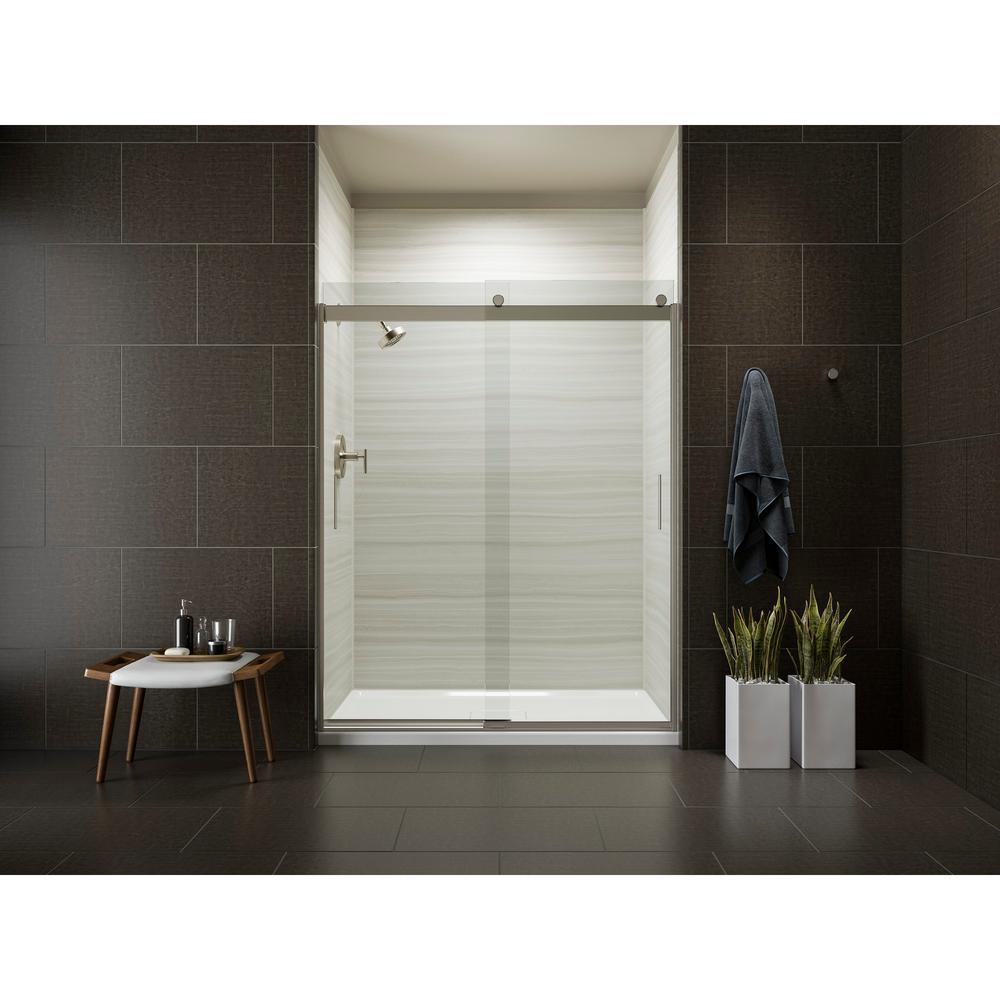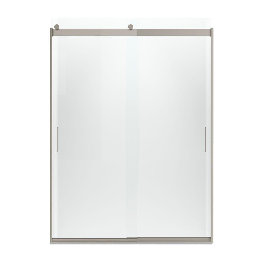 Levity 59 in. x 82 in. Frameless Sliding Shower Door in Nickel with Handle