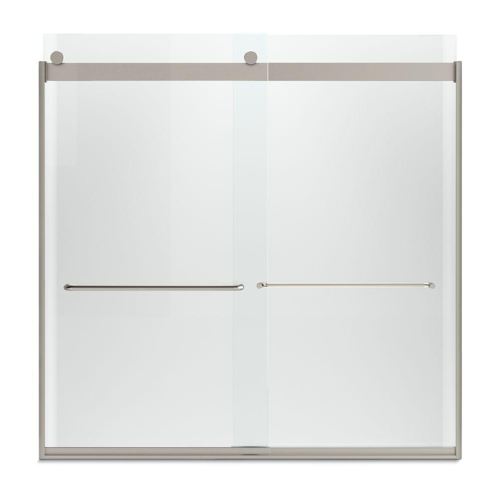 Levity 59 in. x 62 in. Semi-Frameless Sliding Tub Door in Nickel with Handle and Clear Glass