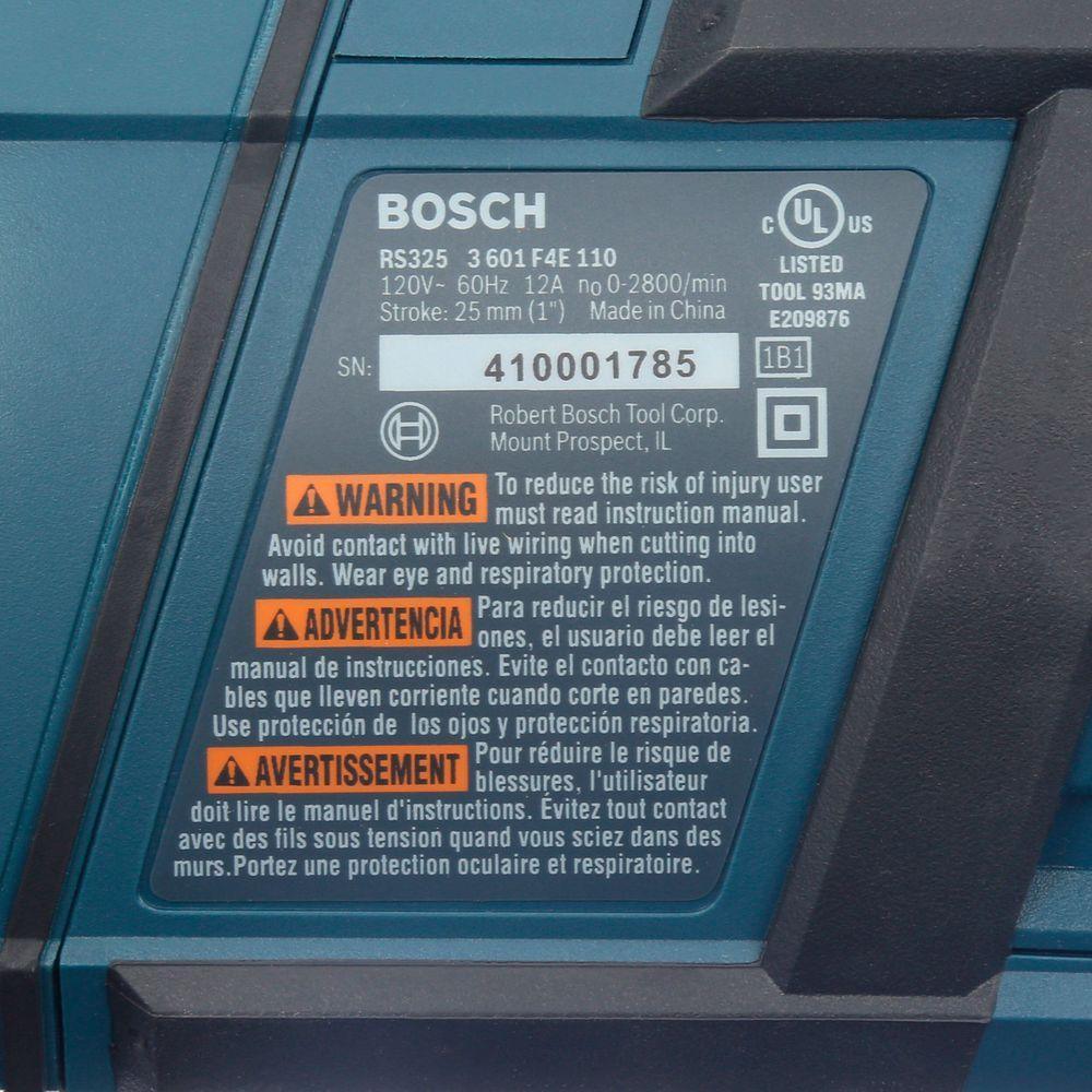 The Factory Reconditioned Bosch RS325 offers 12 Amp of power at only 7 lbs. provides the ability to cut through the toughest materials with ease, speed, and comfort. At only 17.8 in. long allows easy cutting in challenging positions, especially overhead for less fatigue with light weight design. The blade change system - Most robust blade holder system for reliable and durable expectations. Rugged Bosch quality for all job site environments.