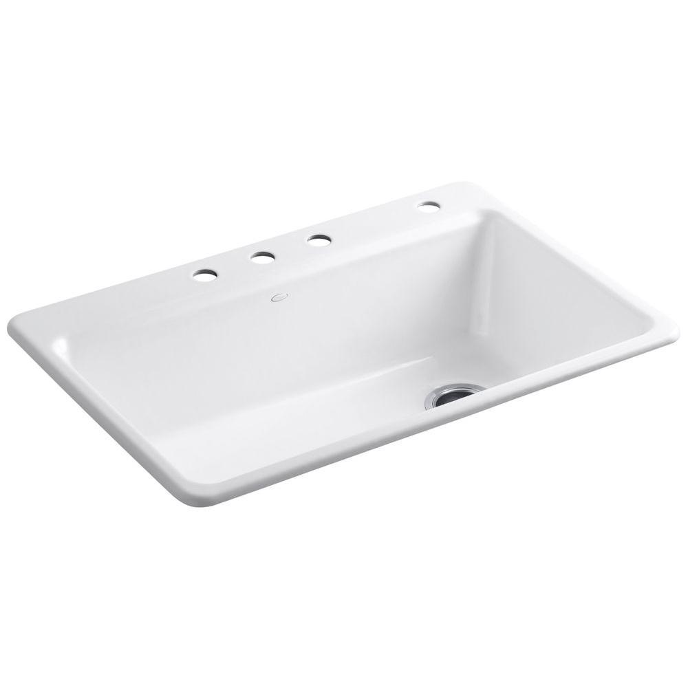 Riverby Workstation Drop-In Cast Iron 33 in. 4-Hole Single Bowl Kitchen Sink Kit with Included Accessories in White