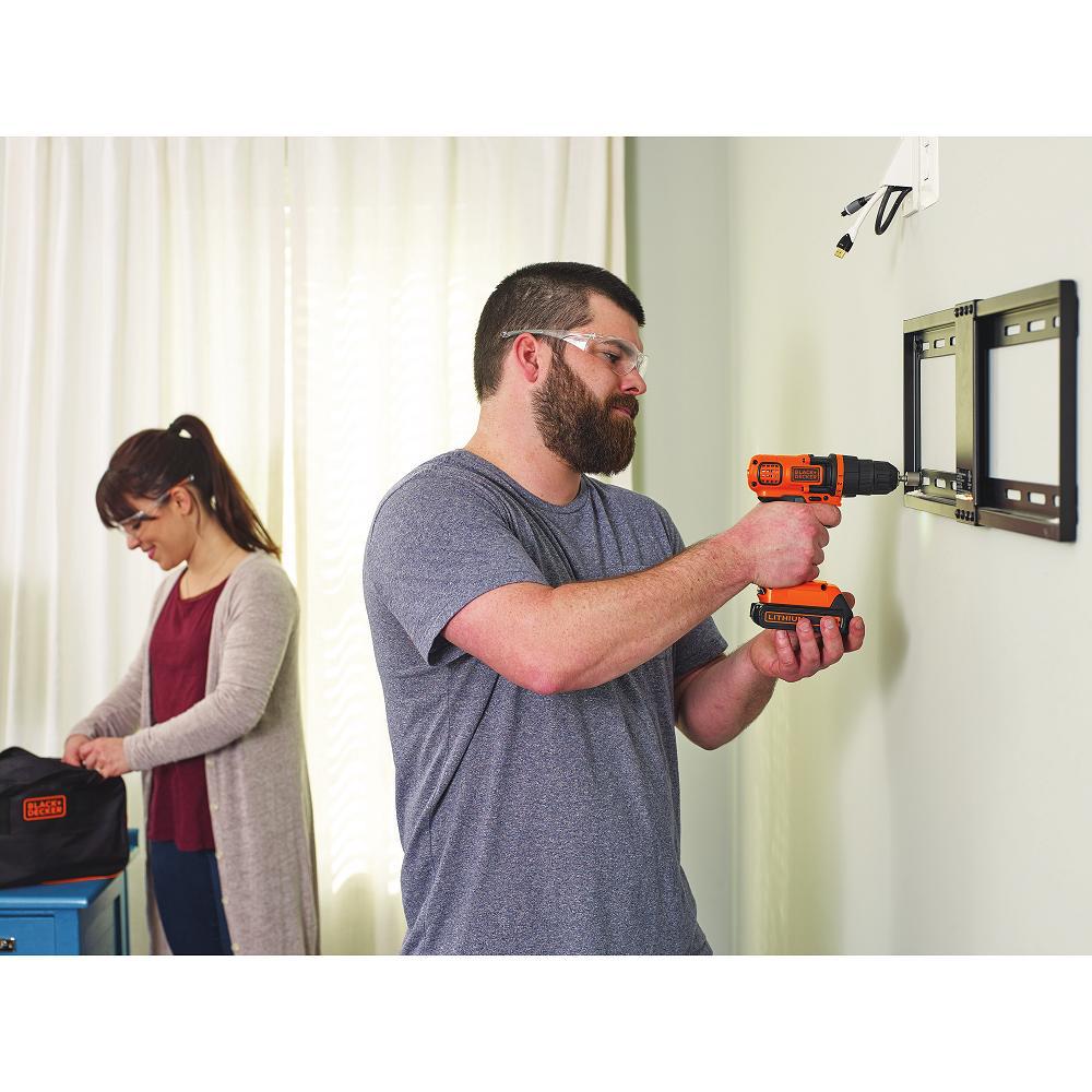 With 66 hand tools and accessories including screwdrivers, wrenches, drill bits and more, the BLACK+DECKER 20-Volt Max Lithium Drill and Project Kit is ideal for a variety of jobs around the home. The drill's 11-position clutch offers versatility and control, helping prevent stripping or overdriving screws. Powered by lithium-ion battery technology, the kit includes an always-ready battery that holds a charge up to 18 months, so you can get right to work whenever you need.