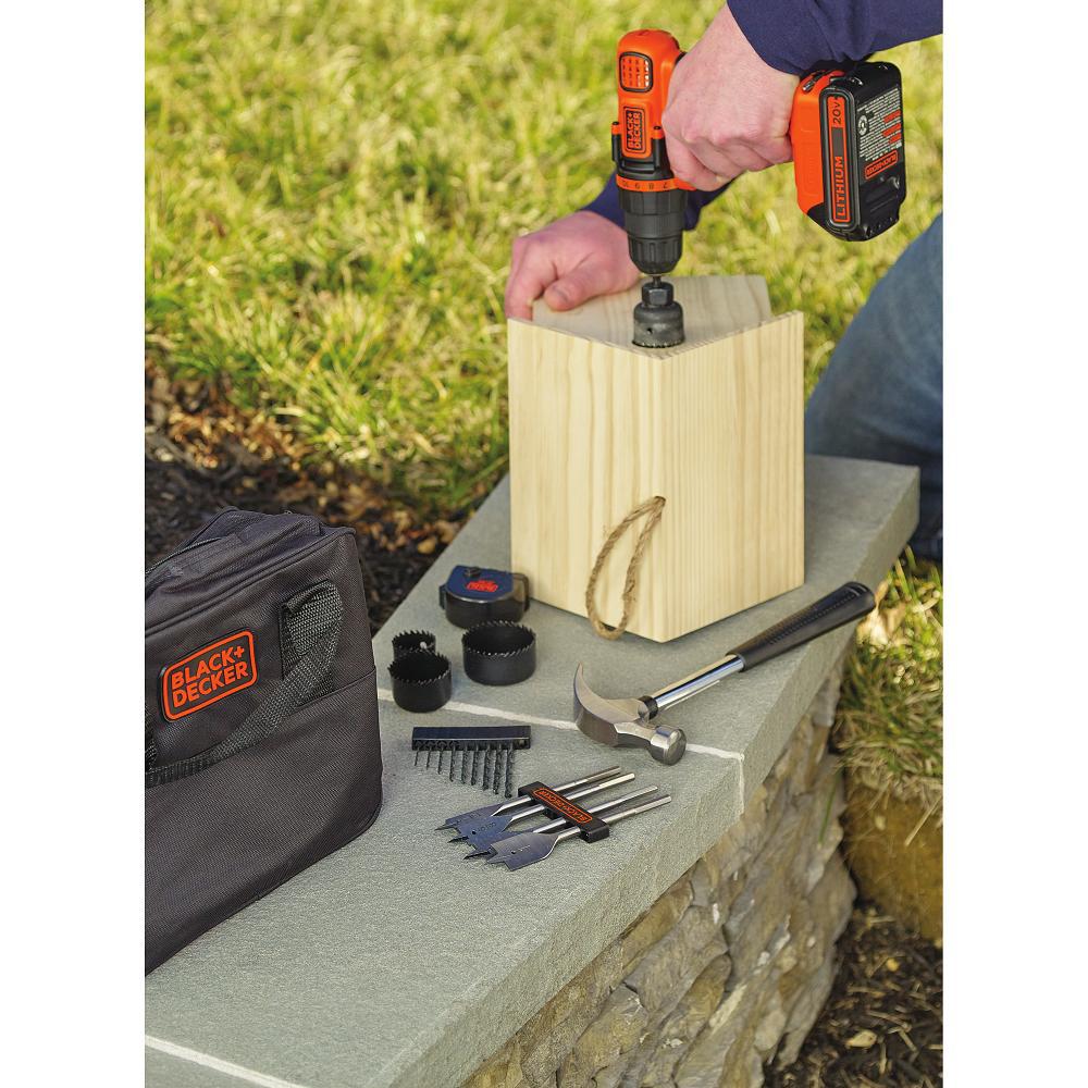 • Comes with 66 hand tools and accessories including the 20-Volt Max lithium-ion drill, battery, charger and carrying bag for easy portability and storage