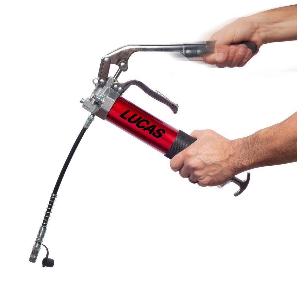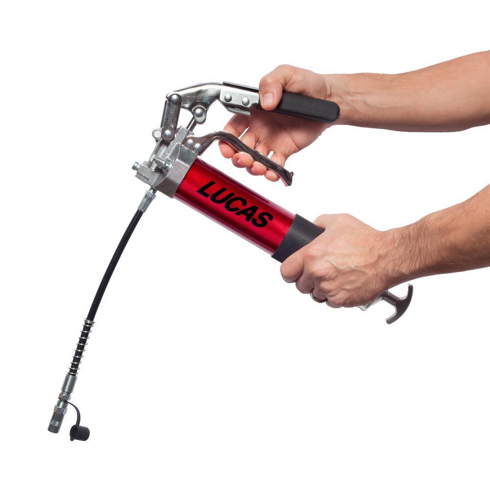 The Lucas Dual-Lever Pistol Grease Gun is a multi-function ace, combining the convenience of a pistol grip with the power of a lever grip. This 2-way lever/pistol grip switches back and forth between grips to deliver just the right power and utility for every job. The Lucas Dual-Lever Pistol Grease Gun can be bulk-loaded, pump-loaded, or cartridge-loaded for added flexibility and includes an air bleeder valve for priming. As with every Lucas product, the Dual-Lever Pistol Grease Gun is built with high-quality materials and designed with best-in-class ergonomics. It’s the last grease gun you’ll ever own.