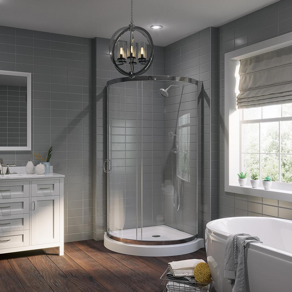 Add a look of luxury in your space with the Breeze Premium Shower Kit. Featuring a reversible, premium sliding door and rounded acrylic shower base, this is the perfect shower kit for smaller to mid-sized bathrooms. It allows for tiling or personalized wall decor to complement your bath area.