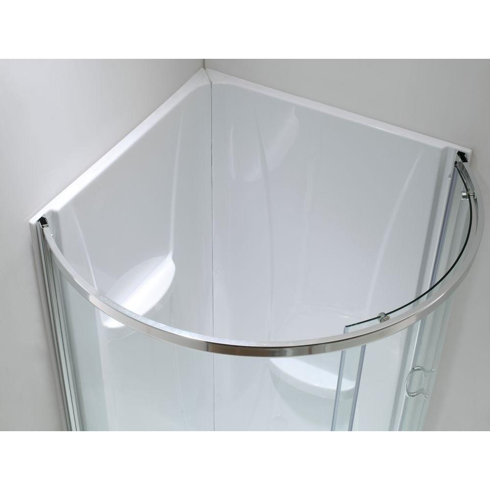 • Premium shower kit including acrylic base, clear glass sliding door and acrylic walls