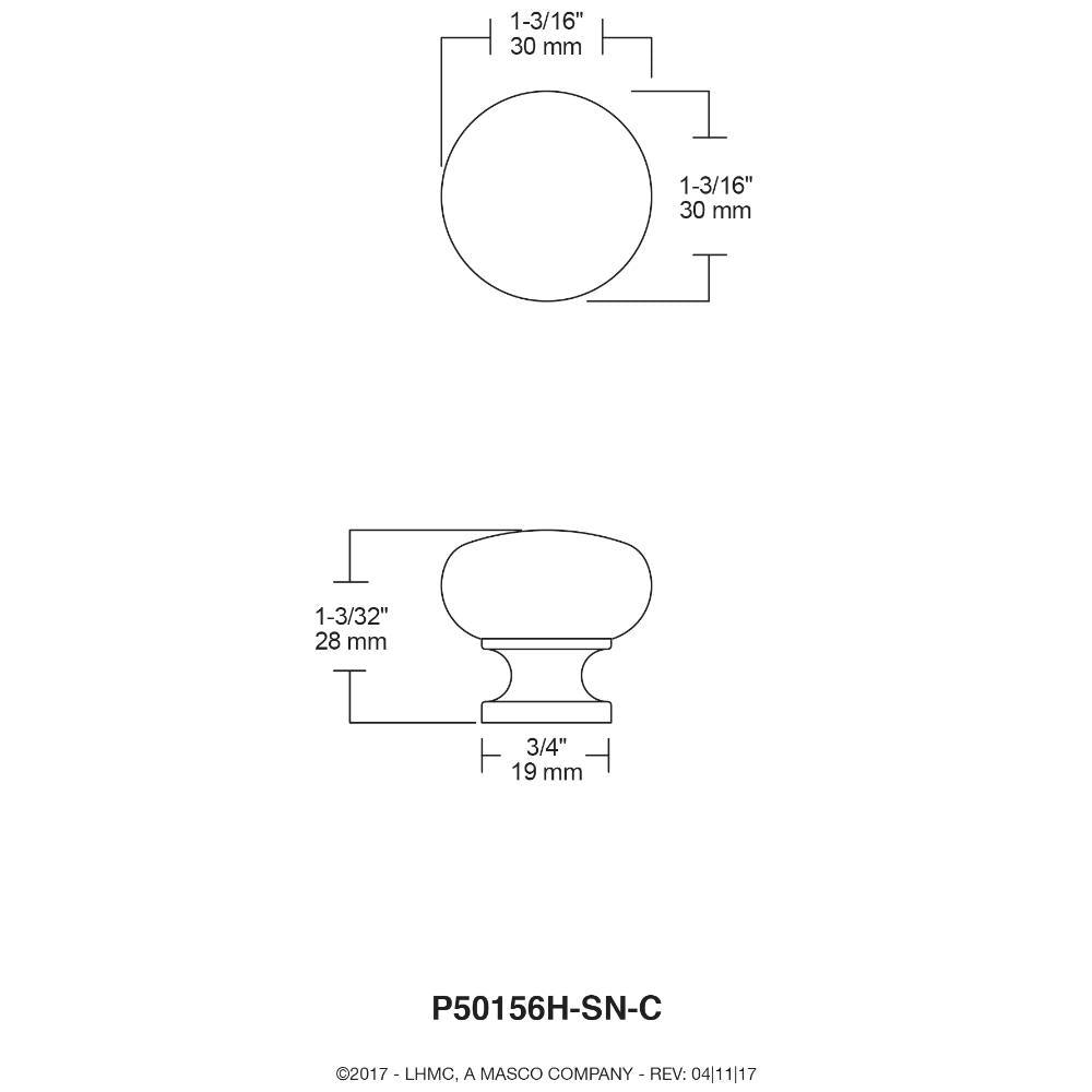 The Liberty 1-1/8 in. Satin Nickel Round Knob adds a contemporary note to cabinetry throughout your home. A simple change can give any room a brand new look and feel. The high-quality die-cast zinc body features a satin nickel finish, and the knob features a rear-mount installation.