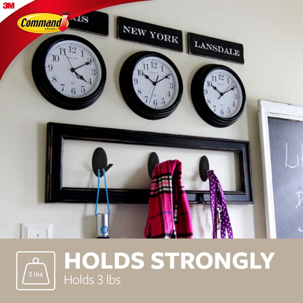 Command Decorative Hook come in a variety of styles from sophisticated to fun and playful giving you options for every room and every person in your home. Using the revolutionary Command Adhesive, Command Decorative Hook hold strongly on a variety of surfaces, including paint, wood, tile and more. Yet, they also come off cleanly no holes, marks, sticky residue or stain so you can take down and move your Command Hook as often as you like. Reusing them is as easy as applying a Command Refill Strip, so you can take down, move and reuse them again and again. Contains 2 Hook and 4 strips. Holds up to 3 lbs.