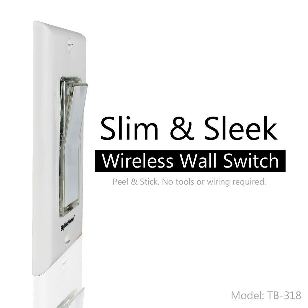 The SkylinkHome TB-318 Wireless Stick-on OR Wall Mounted Transmitter Light Switch allows you to add a wall switch anywhere you want without running wires and paying for an electrician. Requires SkylinkHome Control Receivers to work (WE-001, WR-001, WE-318, LX-318 and more) The TB-318 installs in seconds to provide you convenient smart home anywhere wireless lighting control. Ideal for use on stairwells, entrance ways, garages and bedrooms. Turn your lights on/off or dim/brighten from two separate locations.