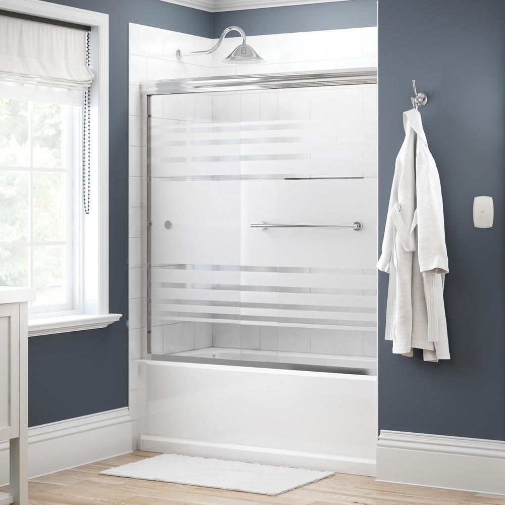 Whether you’re looking for a moderate DIY project or working on a bathroom remodel, upgrading your bathroom with a new sliding shower door is easy with the Delta 1-2-3 custom sliding shower door program. Delta’s custom glass shower door program offers 1000s of design combinations by choosing your glass shower panels, shower door track, and shower door handles to build a unique, personalized glass shower door. Simple and classic, the Traditional bathtub door track in chrome features a reversible top track with two unique profiles that offer uncompromised quality and value with a design that’s familiar and balanced. Show off your beautiful shower with standard 1/4 in. ANSI certified tempered glass shower panels, featuring Delta Spot Guard with a completely transparent look for a glass shower door that is both simple and elegant. The Lyndall sliding shower door handles in chrome feature two convenient towel bars for extra bathroom storage in a contemporary design silhouette that beautifully demonstrates simplistic, modern elegance.