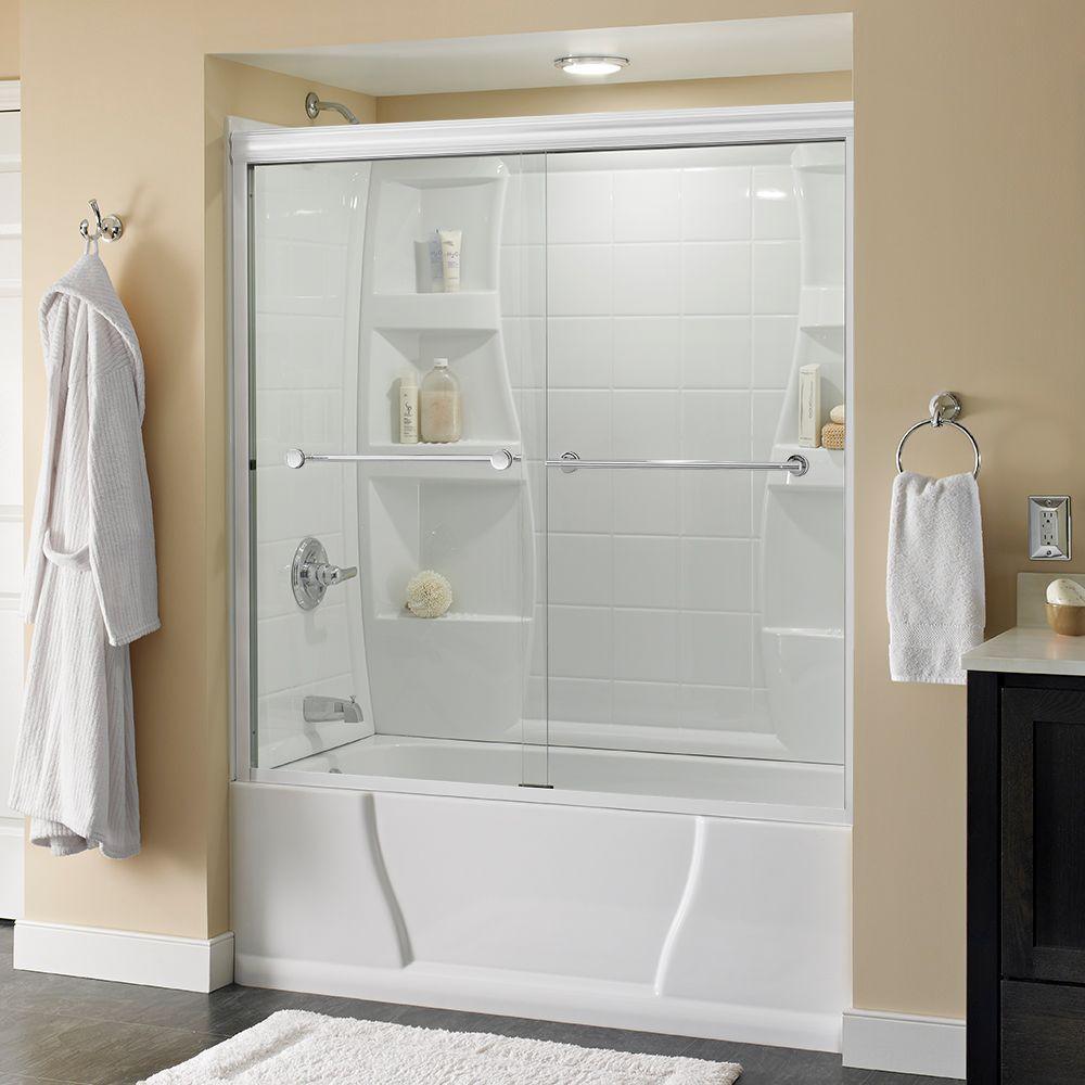 Delta sliding glass bathtub panels feature Delta Spot Guard glass treatment for easy cleaning, to resist water spots and hardwater stains, and help reduce soap scum and limescale buildup when properly maintained