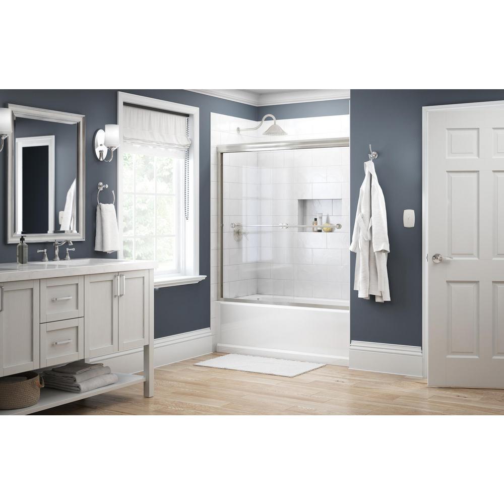 Whether you’re looking for a moderate DIY project or working on a bathroom remodel, upgrading your bathroom with a new sliding shower door is easy with the Delta 1-2-3 custom sliding shower door program. Delta’s custom glass shower door program offers 1000s of design combinations by choosing your glass shower panels, shower door track, and shower door handles to build a unique, personalized glass shower door. Simple and classic, the Traditional bathtub door track in nickel features a reversible top track with two unique profiles that offer uncompromised quality and value with a design that’s familiar and balanced. Show off your beautiful shower with standard 1/4 in. ANSI certified tempered glass shower panels, featuring Delta Spot Guard with a completely transparent look for a glass shower door that is both simple and elegant. The Lyndall sliding shower door handles in nickel feature two convenient towel bars for extra bathroom storage in a contemporary design silhouette that beautifully demonstrates simplistic, modern elegance.