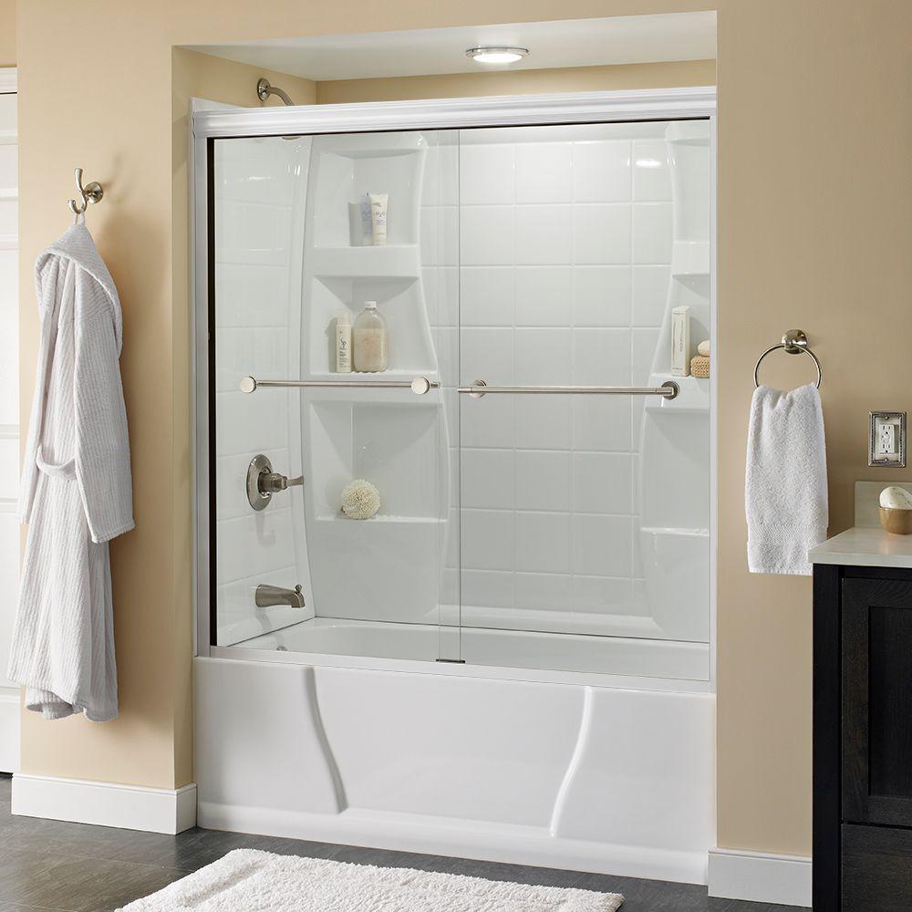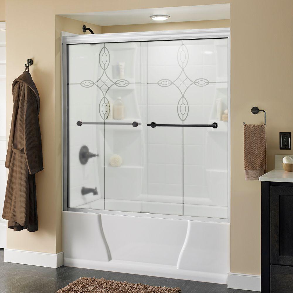 Whether you’re looking for a moderate DIY project or working on a bathroom remodel, upgrading your bathroom with a new sliding shower door is easy with the Delta 1-2-3 custom sliding shower door program. Delta’s custom glass shower door program offers 1000s of design combinations by choosing your glass shower panels, shower door track, and shower door handles to build a unique, personalized glass shower door. Simple and classic, the Traditional bathtub door track in nickel features a reversible top track with two unique profiles that offer uncompromised quality and value with a design that’s familiar and balanced. Make a statement with standard 1/4 in. ANSI certified tempered glass shower panels, featuring a textured surface that resembles water running down the panels for a spa-like feel and the most privacy. The Lyndall sliding shower door handles in nickel feature two convenient towel bars for extra bathroom storage in a contemporary design silhouette that beautifully demonstrates simplistic, modern elegance.