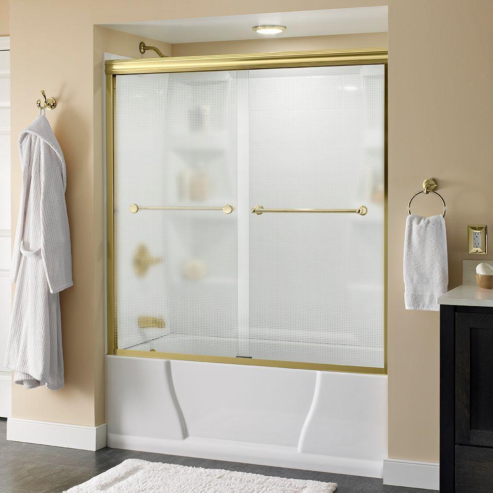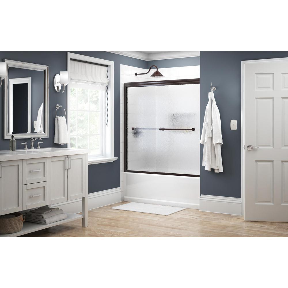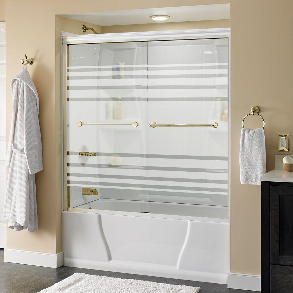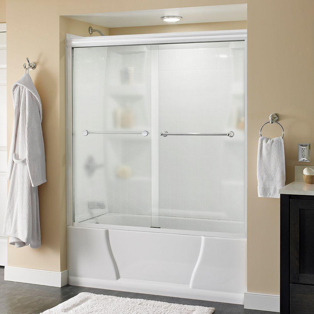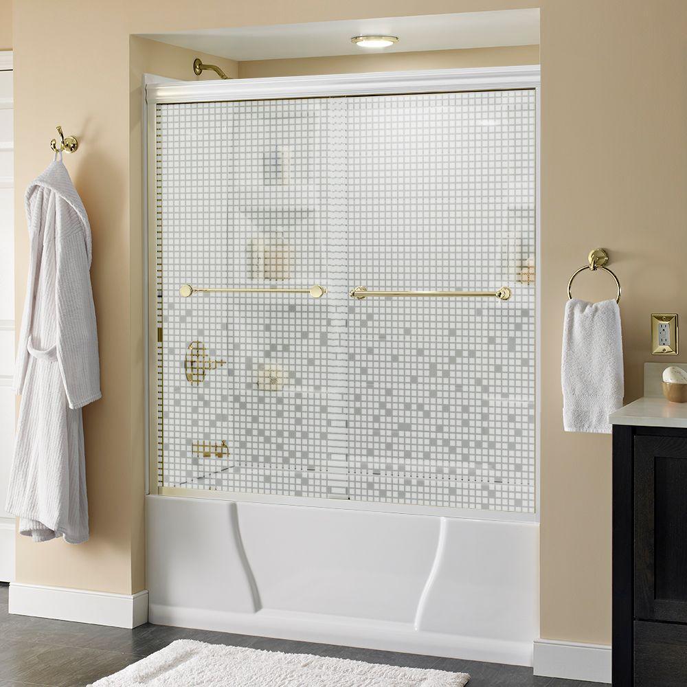 Whether you’re looking for a moderate DIY project or working on a bathroom remodel, upgrading your bathroom with a new sliding shower door is easy with the Delta 1-2-3 custom sliding shower door program. Delta’s custom glass shower door program offers 1000s of design combinations by choosing your glass shower panels, shower door track, and shower door handles to build a unique, personalized glass shower door. Simple and classic, the Traditional bathtub door track in nickel features a reversible top track with two unique profiles that offer uncompromised quality and value with a design that’s familiar and balanced. Make a statement with standard 1/4 in. ANSI certified tempered glass shower panels, featuring an asymmetrical modern pattern of clear and small, frosted squares, creating a intricate pattern that adds randomized privacy. The Crestfield sliding shower door handles in nickel feature two convenient towel bars for extra bathroom storage in a traditional design silhouette that beautifully displays timeless elegance.