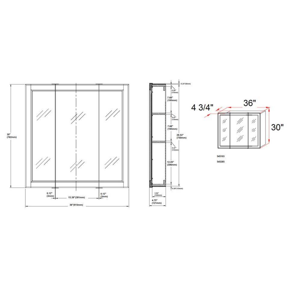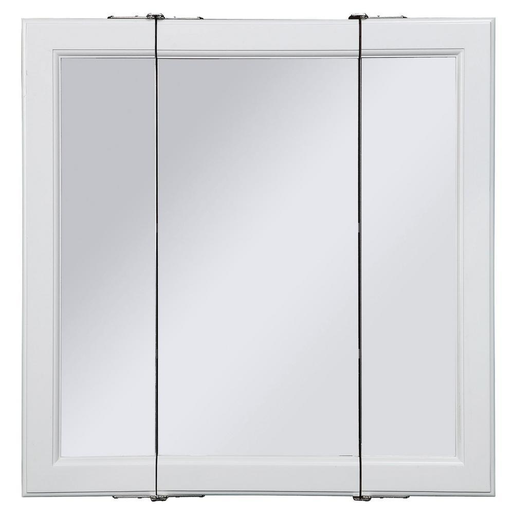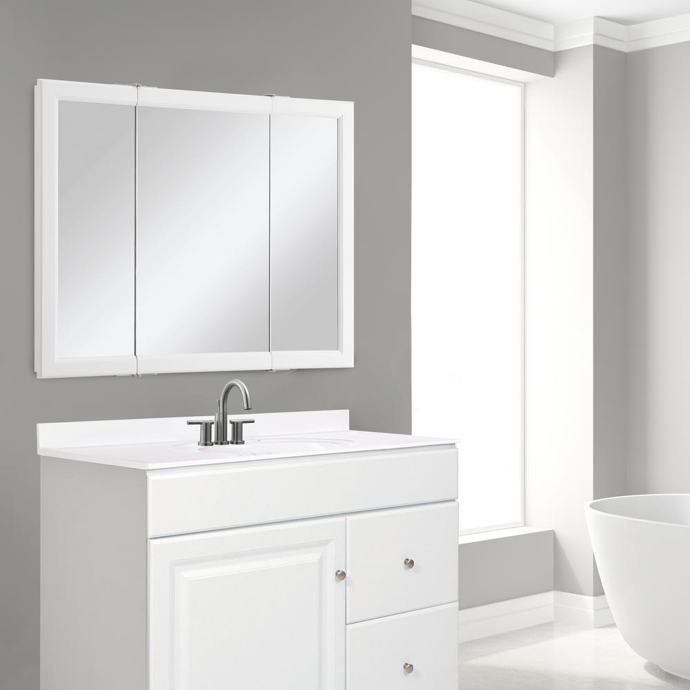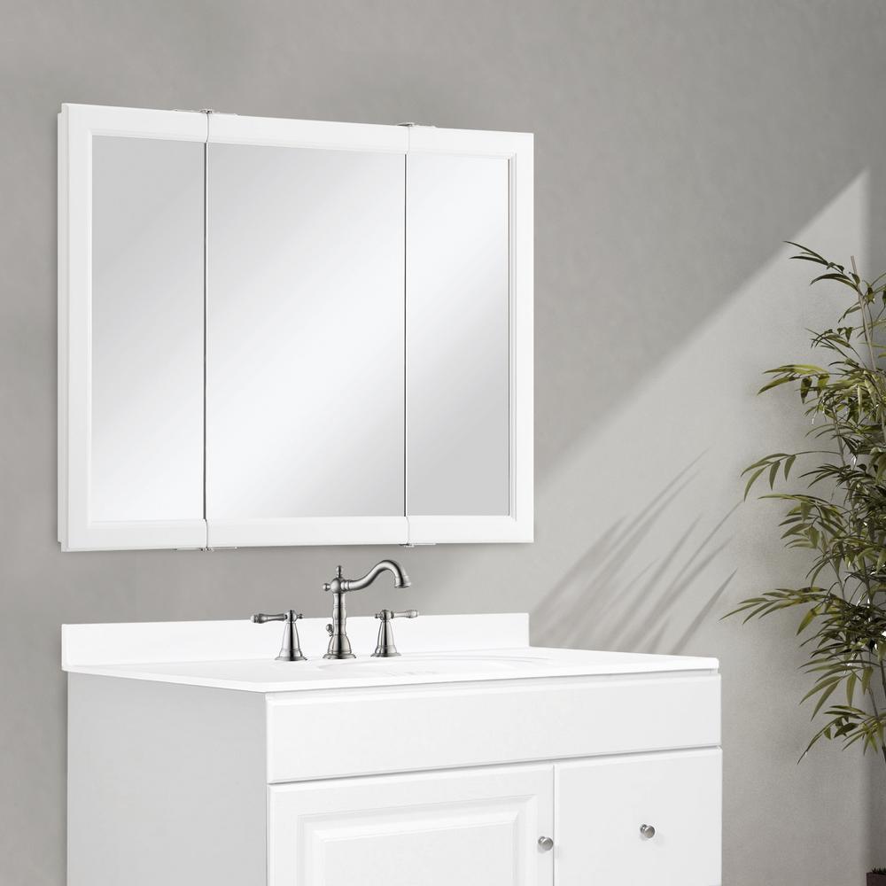 Wyndham 36 in. W x 30 in. H x 4-3/4 in. D Framed Tri-View Surface-Mount Bathroom Medicine Cabinet in White Semi-Gloss