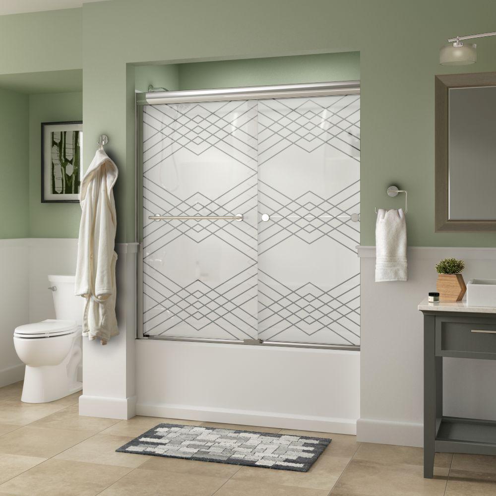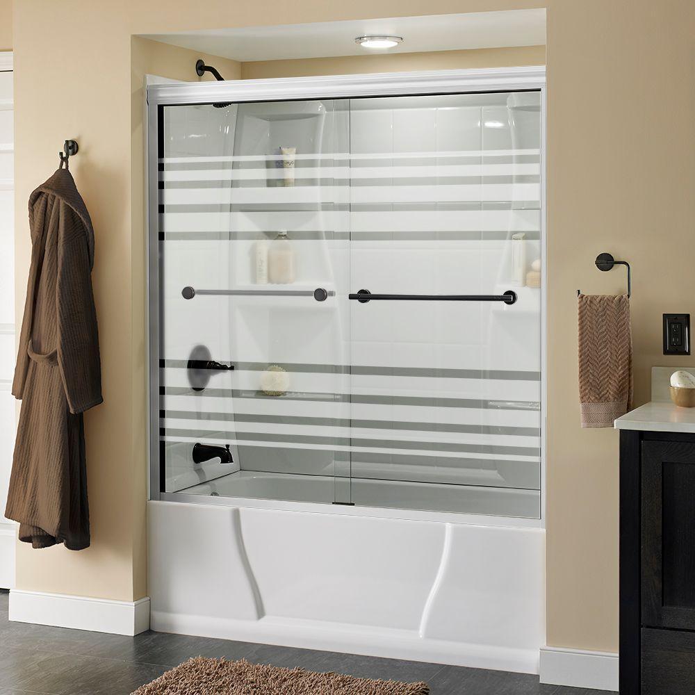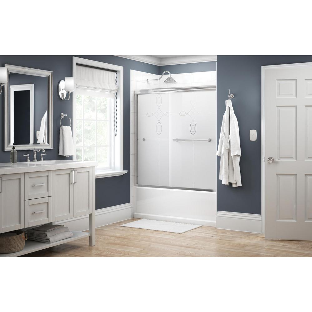 Whether you’re looking for a moderate DIY project or working on a bathroom remodel, upgrading your bathroom with a new sliding shower door is easy with the Delta 1-2-3 custom sliding shower door program. Delta’s custom glass shower door program offers 1000s of design combinations by choosing your glass shower panels, shower door track, and shower door handles to build a unique, personalized glass shower door. Simple and classic, the Traditional bathtub door track in chrome features a reversible top track with two unique profiles that offer uncompromised quality and value with a design that’s familiar and balanced. Make a statement with standard 1/4 in. ANSI certified tempered glass shower panels, featuring a mainly smooth and frosted surface with a traditional design element that’s luxurious and relaxing. The Lyndall sliding shower door handles in chrome feature two convenient towel bars for extra bathroom storage in a contemporary design silhouette that beautifully demonstrates simplistic, modern elegance.