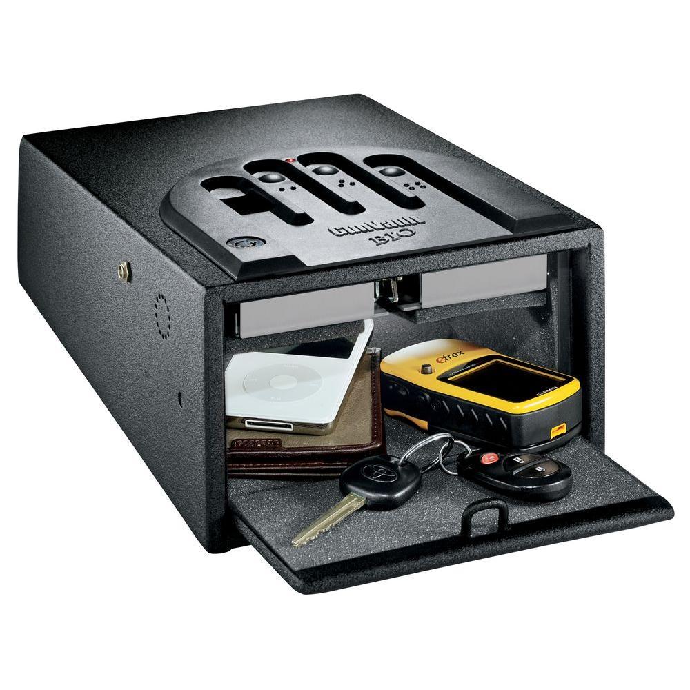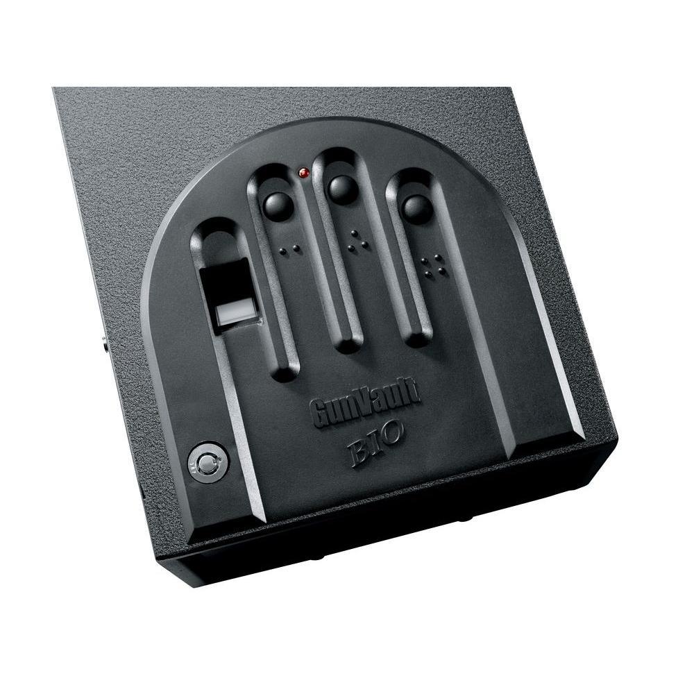 GunVault pistol safes are truly premium products that set the standard for the rest of the industry. We know that security and reliability are prevailing priorities when you need our products, and that's why GunVault pistol safes have the features you want. Our biometric scanner provides lightning-quick access, even in the dark. Improved high strength lock mechanism and precise fittings make it virtually impossible to pry open with hand tools. Battery powered for maximum security and easy portability. The GVB1000 (MiniVault Bio) uses fingerprint recognition, to access the safe contents. A high-performance algorithm is used to achieve speedy identification of enrolled fingerprints; and at the same time has a very low False Reject rate (FRR) for a given false accept rate (FAR). This self-learning algorithm of the GunVault Bio adds new minutiae to the fingerprint templates each time a user touches the finger print scanner, which decreases the likelihood of FRR, updates slight changes that might occur over time to an enrolled fingerprint, as well as to help distinguish variations. The GVB1000 can handle a maximum of 15 fingerprint templates. The GVB1000 also comes with an AC/DC power adapter, and an interior courtesy light.