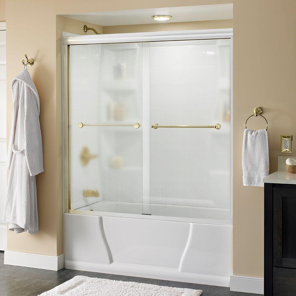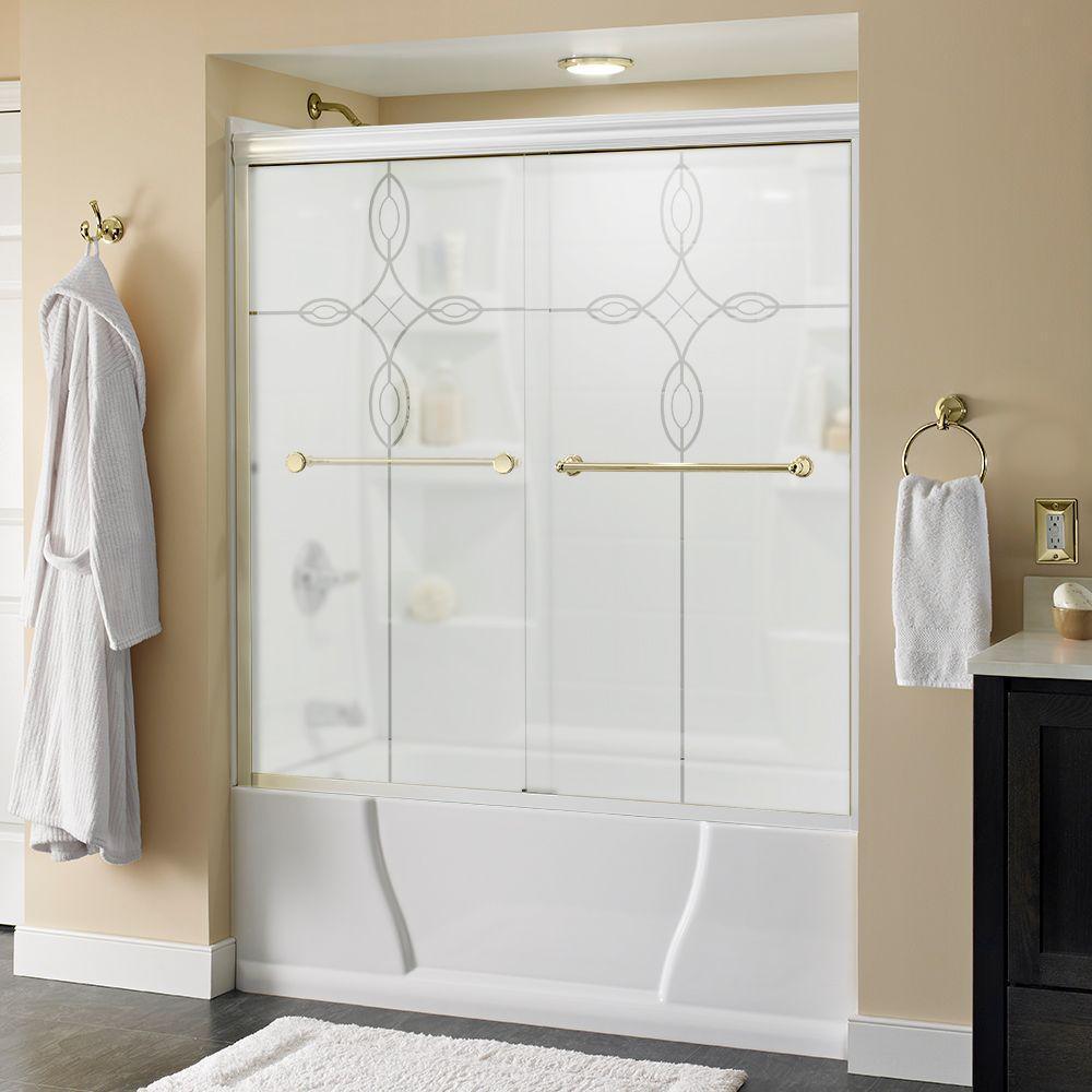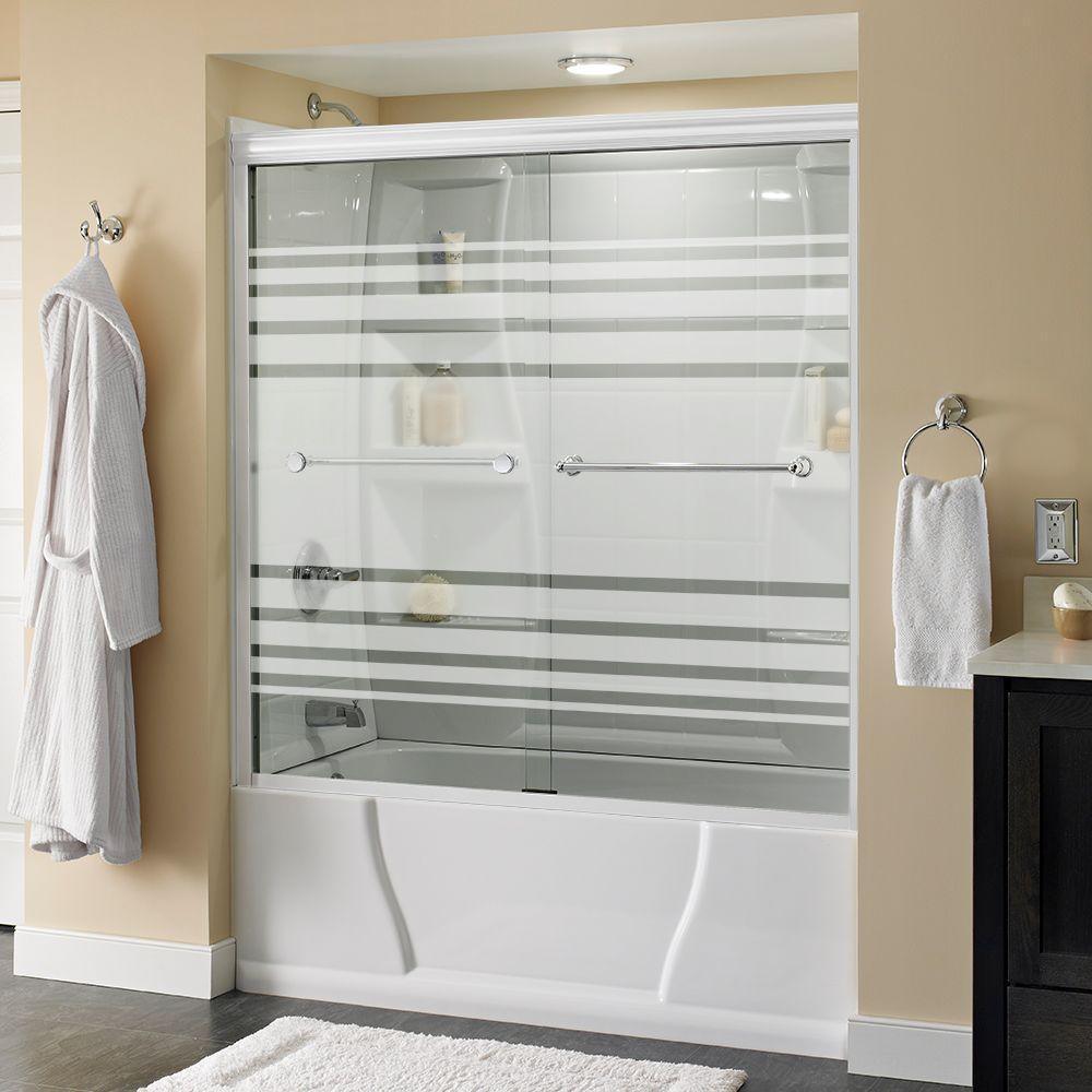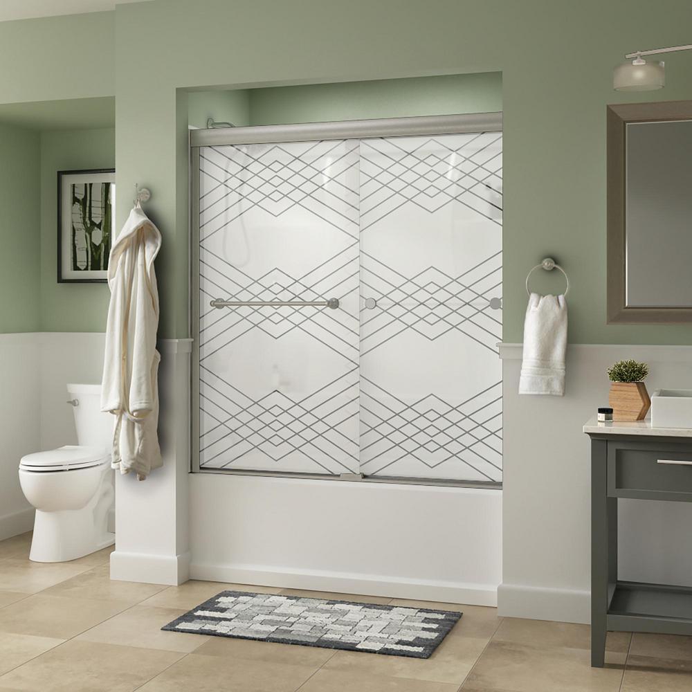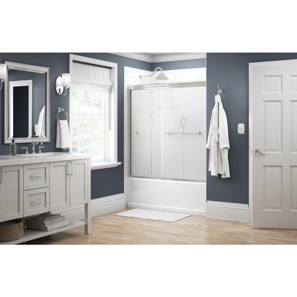 Whether you’re looking for a moderate DIY project or working on a bathroom remodel, upgrading your bathroom with a new sliding shower door is easy with the Delta 1-2-3 custom sliding shower door program. Delta’s custom glass shower door program offers 1000s of design combinations by choosing your glass shower panels, shower door track, and shower door handles to build a unique, personalized glass shower door. Simple and classic, the Traditional bathtub door track in nickel features a reversible top track with two unique profiles that offer uncompromised quality and value with a design that’s familiar and balanced. Make a statement with standard 1/4 in. ANSI certified tempered glass shower panels, featuring a mainly smooth and frosted surface with a traditional design element that’s luxurious and relaxing. The Crestfield sliding shower door handles in nickel feature two convenient towel bars for extra bathroom storage in a traditional design silhouette that beautifully displays timeless elegance.