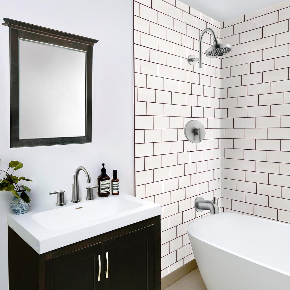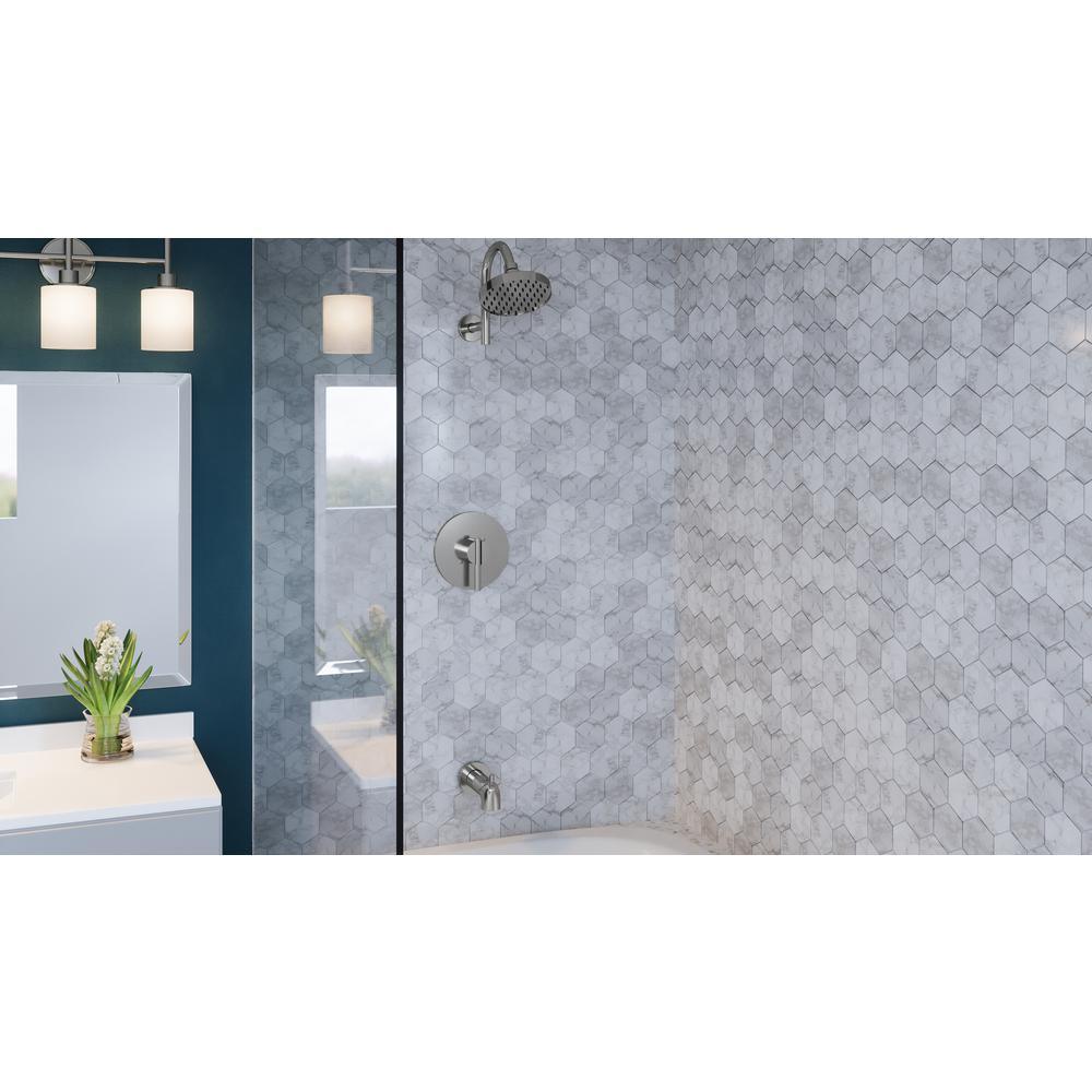 The Geneva Bath and Shower Trim with Valve features a single handle design to easily adjust the temperature in your bathtub or shower. Finished in satin nickel, this tub and shower kit will add a contemporary touch to your bathroom with its simple design. The brass waterways contain zinc and copper which are known to prevent antimicrobial growth ensuring safe and clean water for your family and compression cartridge that is low maintenance and easy to repair. Enjoy a high-pressure shower while using less water with a flow rate of 1.8 GPM. The pull-up diverter spout will quickly disperse water out of the shower head. Coordinate the rest of your home with the Geneva collection.