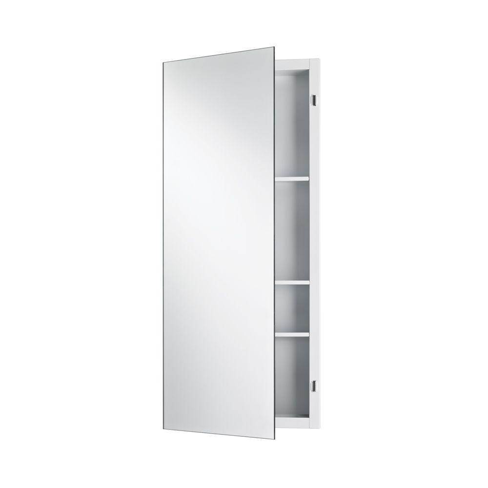 Simple, clean polished-edge design enables the Jensen 835P34WHX Focus 16 in. W Recessed Medicine Cabinet to fit seamlessly with a wide variety of bath or powder room decorating styles. A pencil polished mirror provides a distortion-free reflection for years to come. Three adjustable steel shelves provide secure storage for your bath essentials.