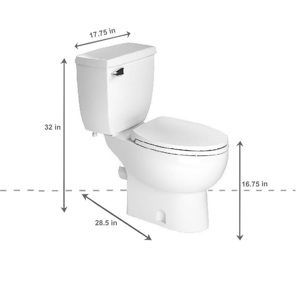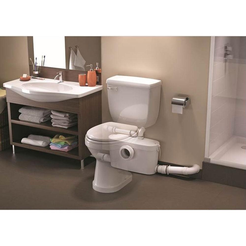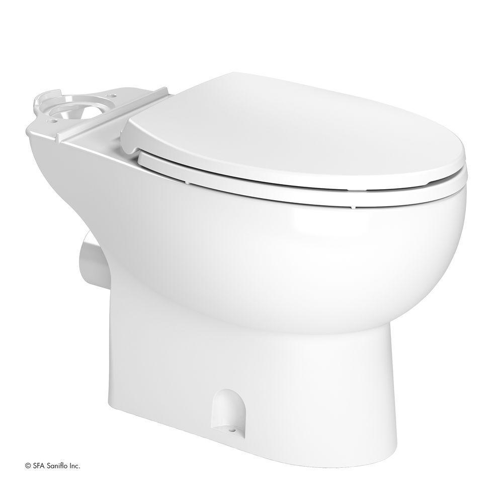 Ideal for a man cave, basement, cellar or anywhere below ground, the Saniaccess3 elongated toilet is outfitted with a 1/2 hp macerating pump to help expel waste. This white toilet allows users to flush confidently up to 15 ft. below the sewage line or up to 150 ft. away from a soil stack. The motor/pump assembly can be installed behind a wall with a separately-sold extension pipe to give this two-piece toilet a homey look.