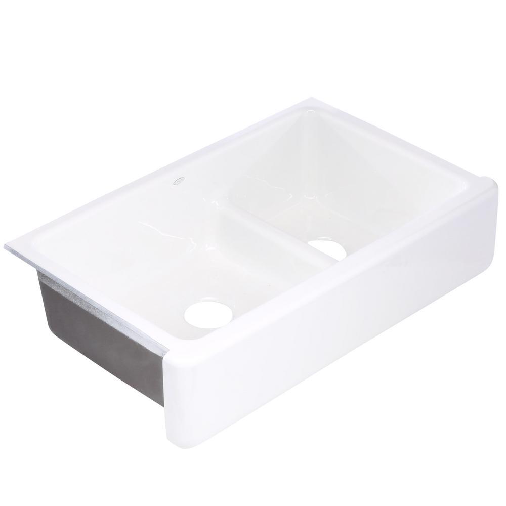 Whitehaven Smart Divide Self-Trimming Farmhouse Apron Front Cast Iron 36 in. Double Bowl Kitchen Sink in White