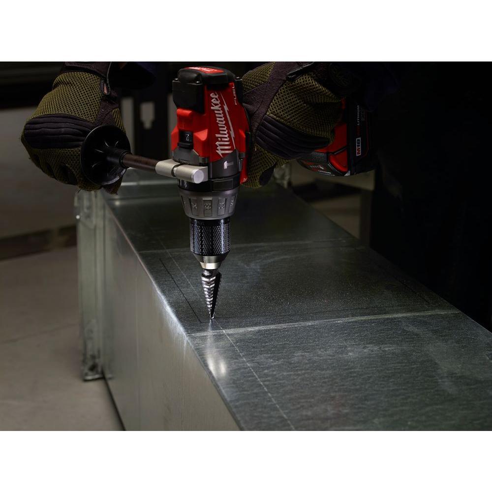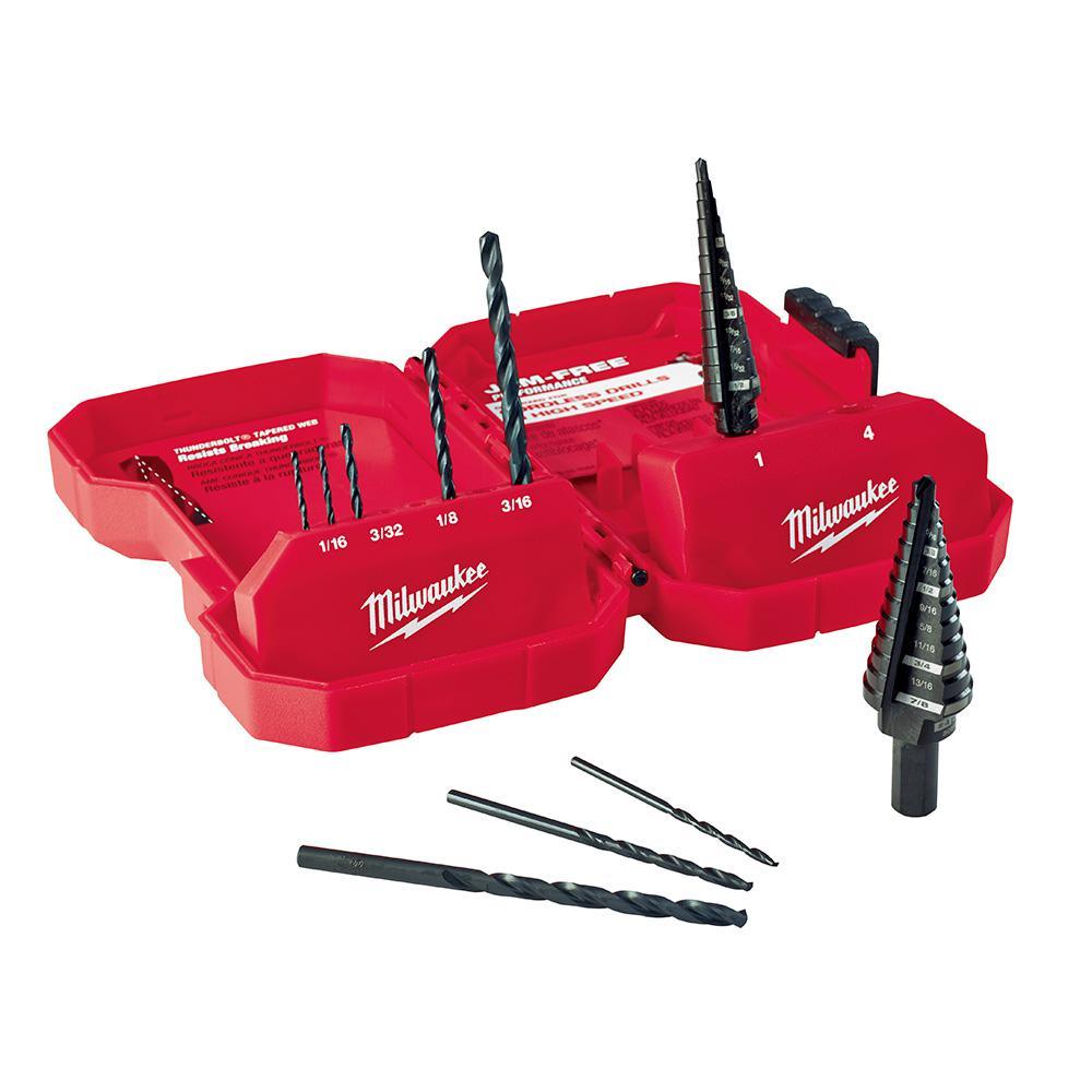 The 10 piece MILWAUKEE Step Drill Bit Kit is perfect for drilling large and small diameter holes in steel and plastic. The step drill bits give jam-free performance optimized for cordless drills in high speed. The dual-flute design creates quicker holes, longer life and more work time per battery charge. The Rapid Strike tips facilitate fast, accurate starts that generate less heat and give longer bit tip life. Black oxide coating enhances the step bits' durability, hole quality, and bit life. Each bit has laser-engraved reference marks for ease of use and convenience while drilling. The 3-flat Secure-Grip shank ensures a solid connection with the drill chuck.
