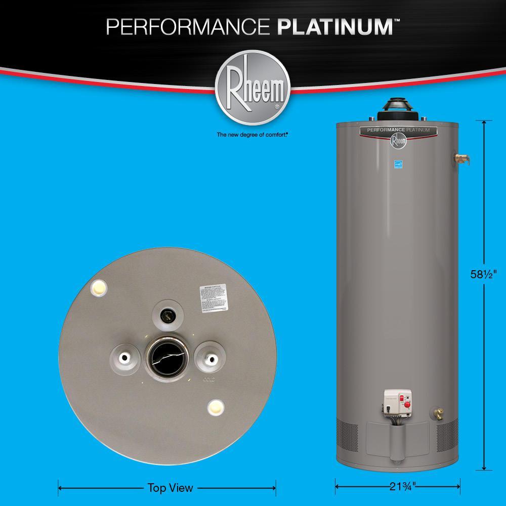The Rheem Performance Platinum 50 Gal. Natural Gas Tall Water Heater comes with a 40,000 BTU/hour environmentally friendly low NOx burner that provides ample hot water for households with 3 to 5 people. The electronic ignition system eliminates the standing pilot light, saves energy and monitors system performance. Its maintenance free combustion air intake system means there are no filters to clean and replace. A premium grade anode rod provides long lasting tank protection. Factory installed temperature and pressure relief valve and 3/4 in. water connections are included with the water heater for easy installation. The water heater is ENERGY STAR qualified. This Rheem Performance Platinum model is Wi-Fi compatible allowing for remote monitoring of the water heater's operation (Wi-Fi Module REWRA631GWH sold separately).