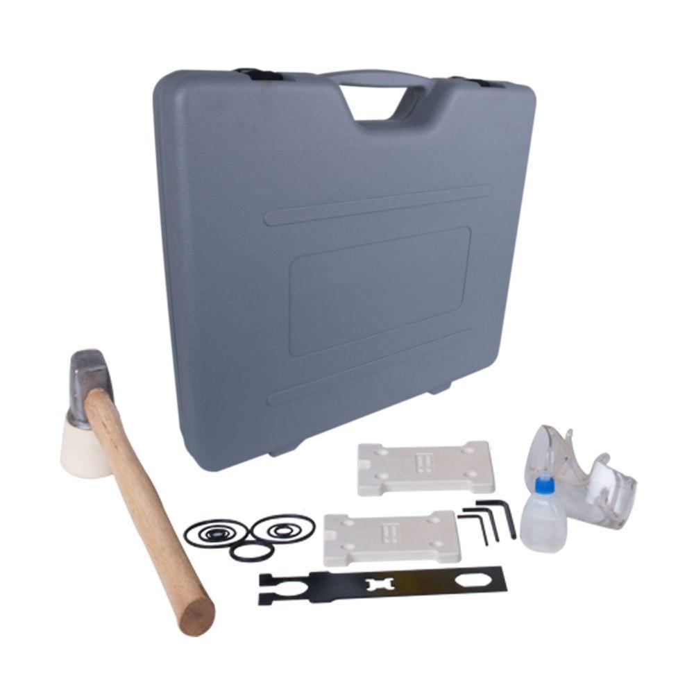 - Includes carrying case and full accessory kit including: mallet, goggles, Allen wrenches, internal key/wrench, O-ring kit, two nylon composite base plates and more