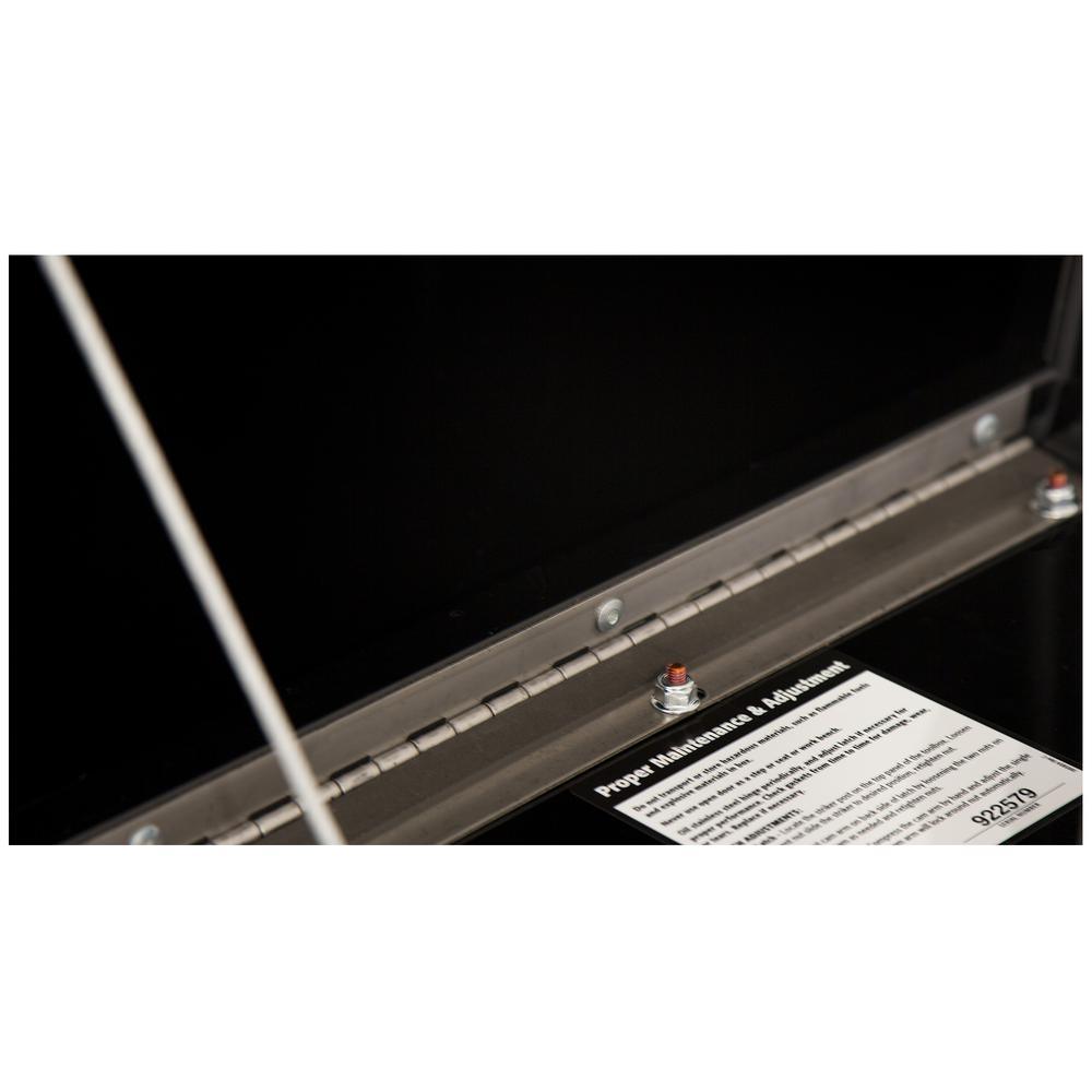 Protect and secure your equipment for the long haul with Buyers Products easy-to-access underbed truck tool boxes. Each professional grade truck tool box is crafted from strong 14 Ga steel, with a recessed 12 Ga drop door. Boxes feature a locking, stainless steel compression latch that helps protect against theft. The truck tool box is available in a black powder-coated finish and built for long life with aircraft grade cable lanyards, stainless steel continuous hinges, and a watertight gasket system.