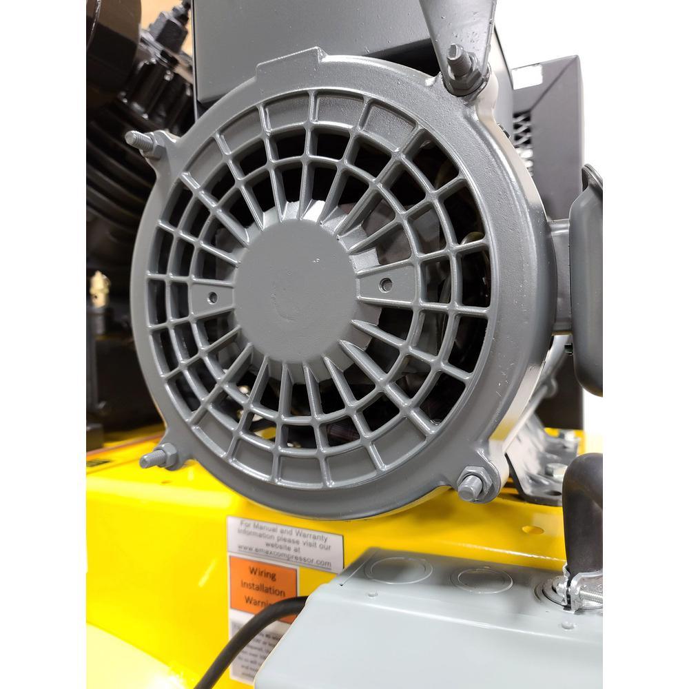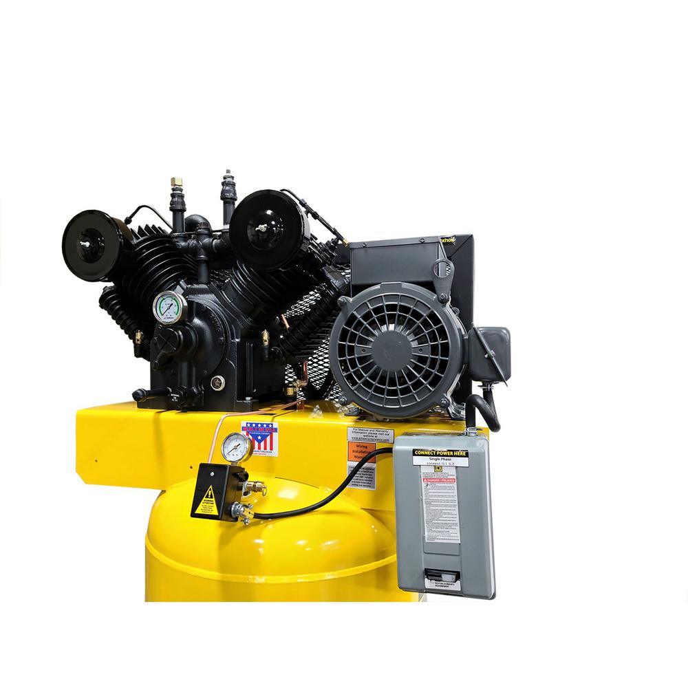 EMAX is the brand tradesman and industrial users look for achieve professional results. EMAX Tools and Equipment deliver overwhelming performance to ensure that they meet the needs of the most demanding environments. The EMAX line of Air Compressors requires less maintenance, service and downtime than any other compressors in the Air Industry. This EMAX Industrial 7.5 HP 2 Stage V4 1 Phase vertical 80 Gal. Piston Air Compressor is designed for up to 70,000 hours of commercial or industrial use with proper maintenance. This unit delivers 34 SCFM @ 100 PSI, top PSI of 175. Our unit features industrial ODP electric motors, magnetic starters, manual ball valve tank drain, powder coated ASME tank 200PSI rating, all paired with all cast iron 70,000 Hr. rated patented pressure lubricated reciprocating pump.