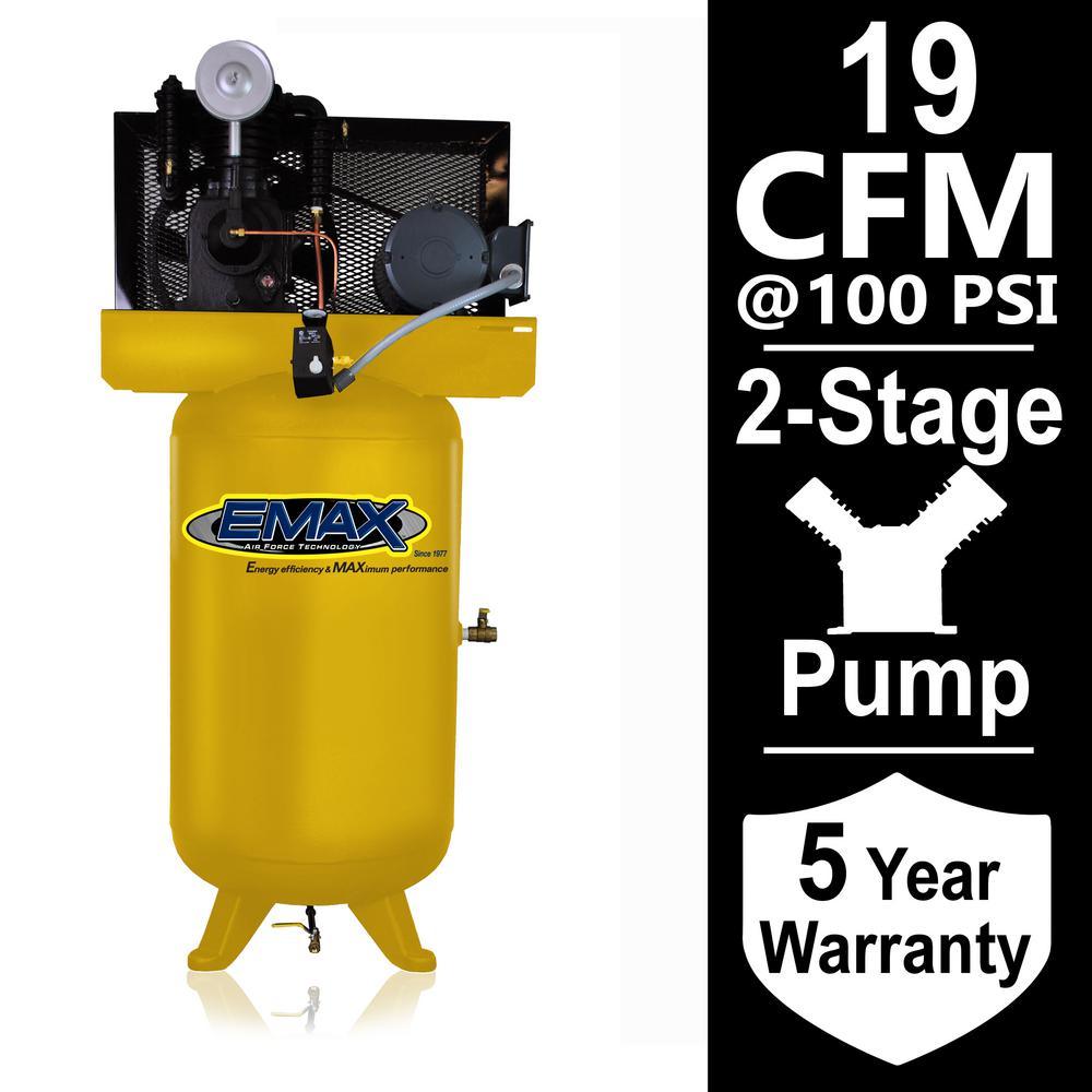 EMAX is the brand tradesman and industrial users look for achieve professional results. EMAX Tools and Equipment deliver overwhelming performance to ensure that they meet the needs of the most demanding environments. The EMAX line of Air Compressors requires less maintenance, service and downtime than any other compressors in the Air Industry. All products are designed with exacting tolerance and specifications to deliver all the power that is needed at the Jobsite, Garage or Shop for extreme performance all day and every day. EMAX 5 HP piston series offers quiet low RPM with solid cast iron construction for extended life. All EMAX pressure Lubricated piston pumps deliver big air and include steel connecting rods and removable disc valves. Air Stream Technology insures you will have the coolest, quietest air compressor in the industry. Our Industrial Series give you the same quality as our Premium Industrial series minus a few bells and whistles, We have created this series so that anyone can afford to have an EMAX Compressor. This Series carries a 5 year warranty.