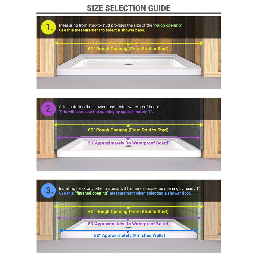 • Note: DreamLine shower bases will always be larger (approximately 2 in.) than the corresponding DreamLine shower enclosures/doors