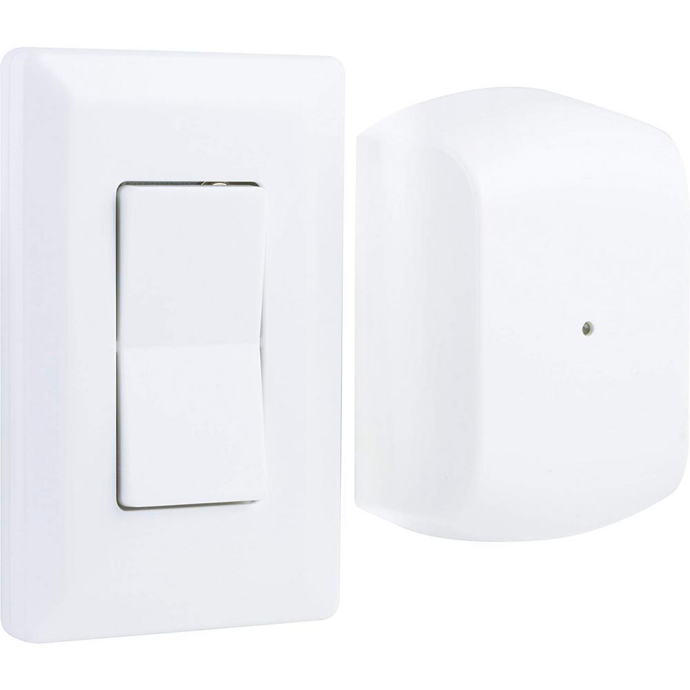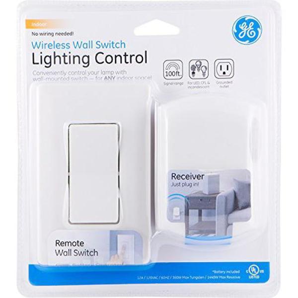 With remote operation up to 100 feet away, the GE Wireless Wall Switch Lighting Control remote allows you to control any light with the touch of a button. The wall switch is easily installed with the included mounting bracket, and the remote includes a 12V A23 battery to get it started. Turn your lights on and off from the comfort of your sofa or bed with this handy, easy to use switch!