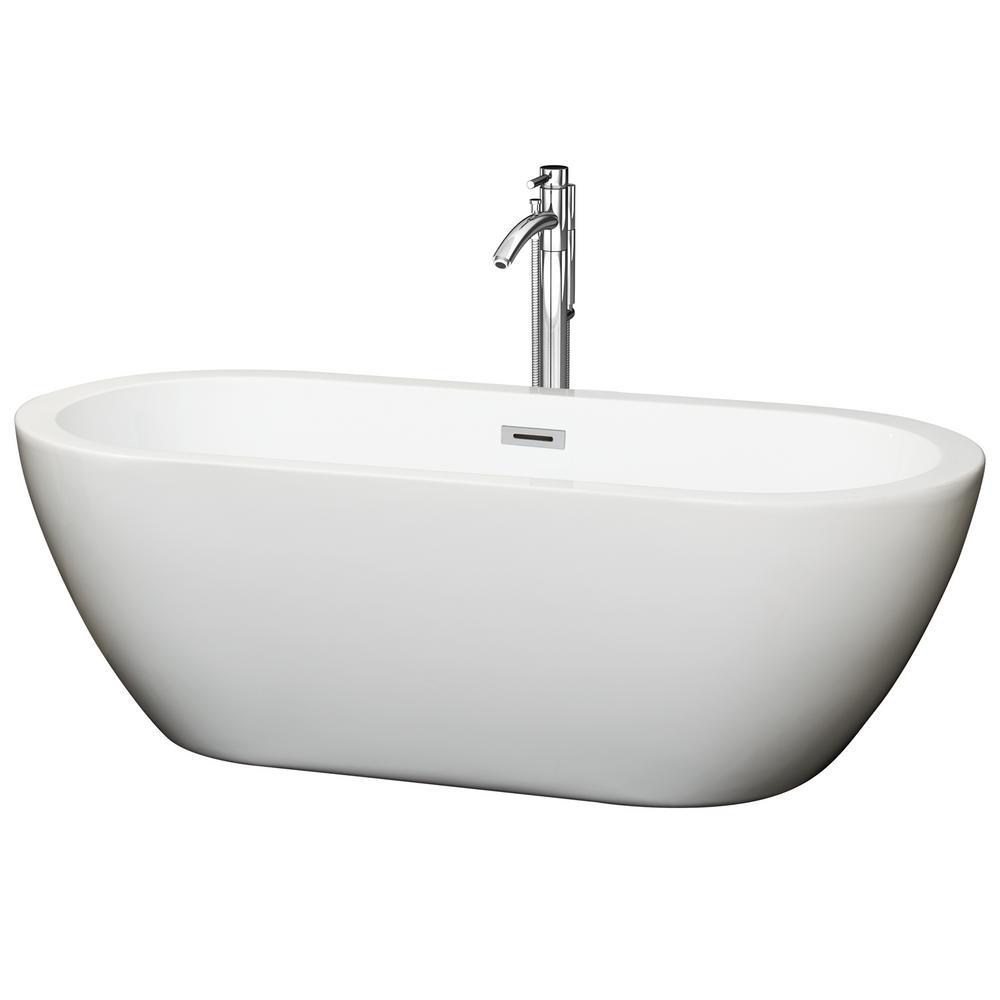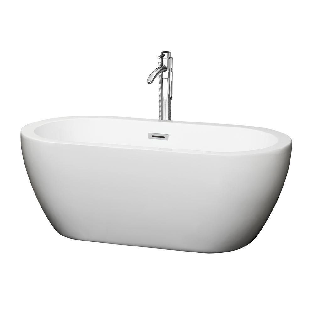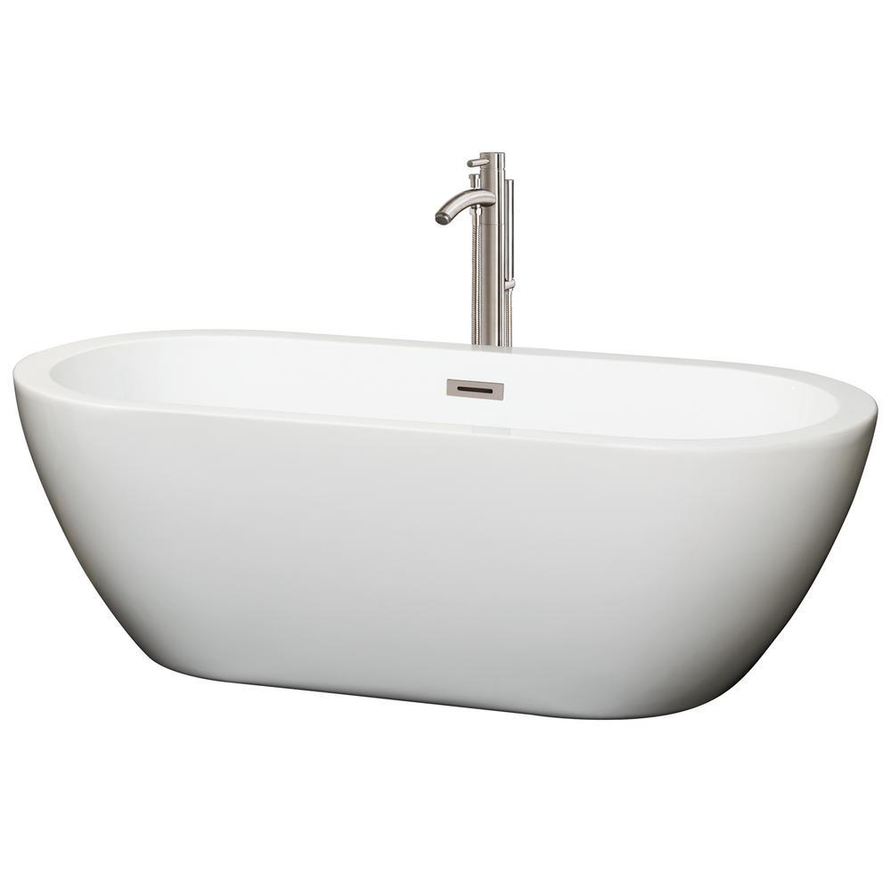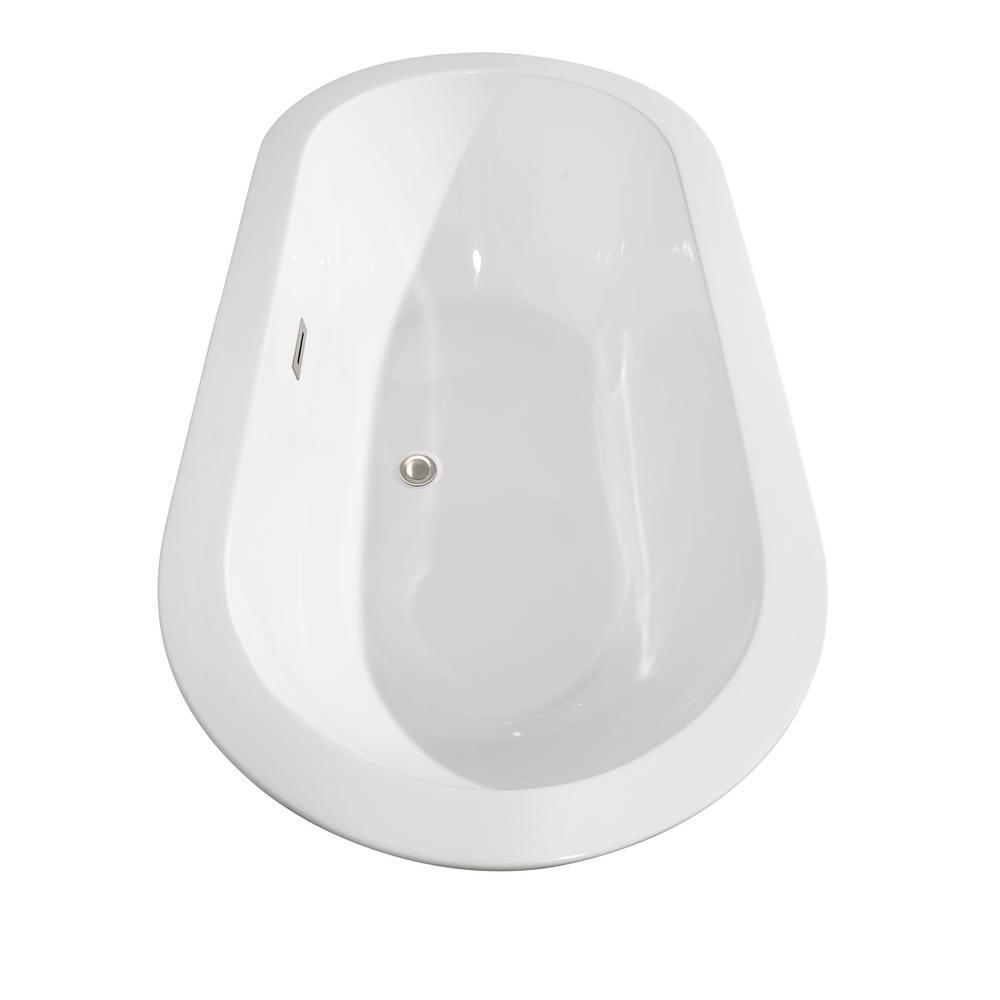 Stunning curves meet full-immersion bathing in the Soho 5 ft. Center Drain Soaking Tub in White. Contemporary styling and soft lines contribute to the freestanding tub’s modern aesthetic, sure to enrich your bathroom ambience and add a hint of serenity. This oval bathtub includes a floor-mounted single-handled brushed nickel faucet along with overflow and drain outlets in brushed nickel for a polished look. The acrylic construction is strong, light and warmer to the touch than typical steel or enamel tubs, allowing for easy installs and heat-retaining soaks.